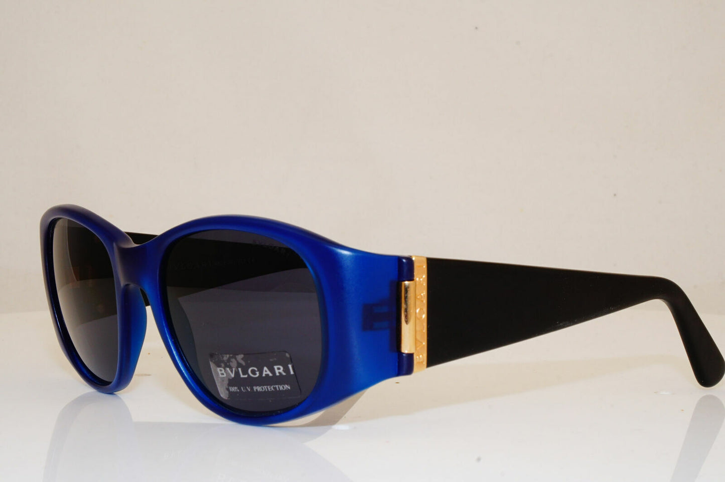Authentic BVLGARI Mens Womens Vintage Sunglasses Blue Square GOLD 802 905 26247