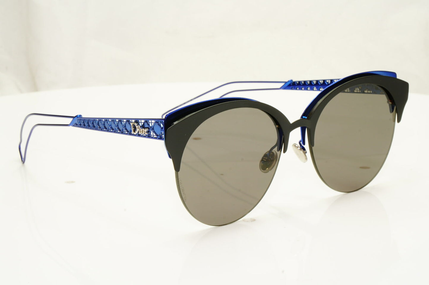 Authentic Dior Womens Metal Sunglasses Black Blue Grey Diorama Club G5V2K