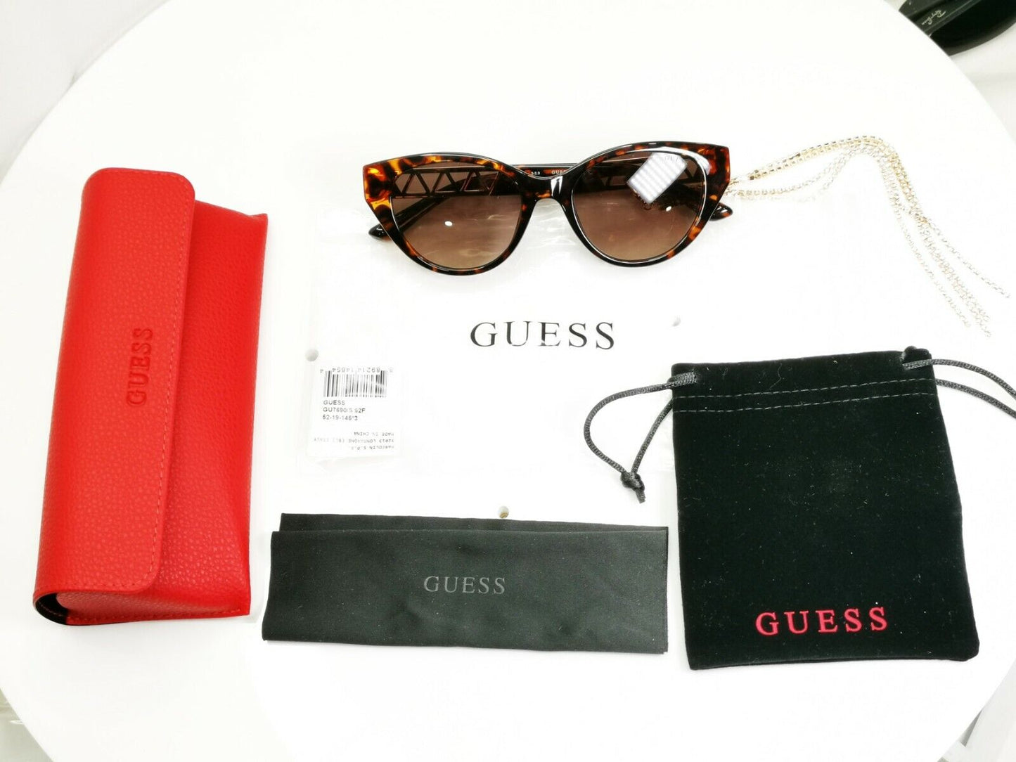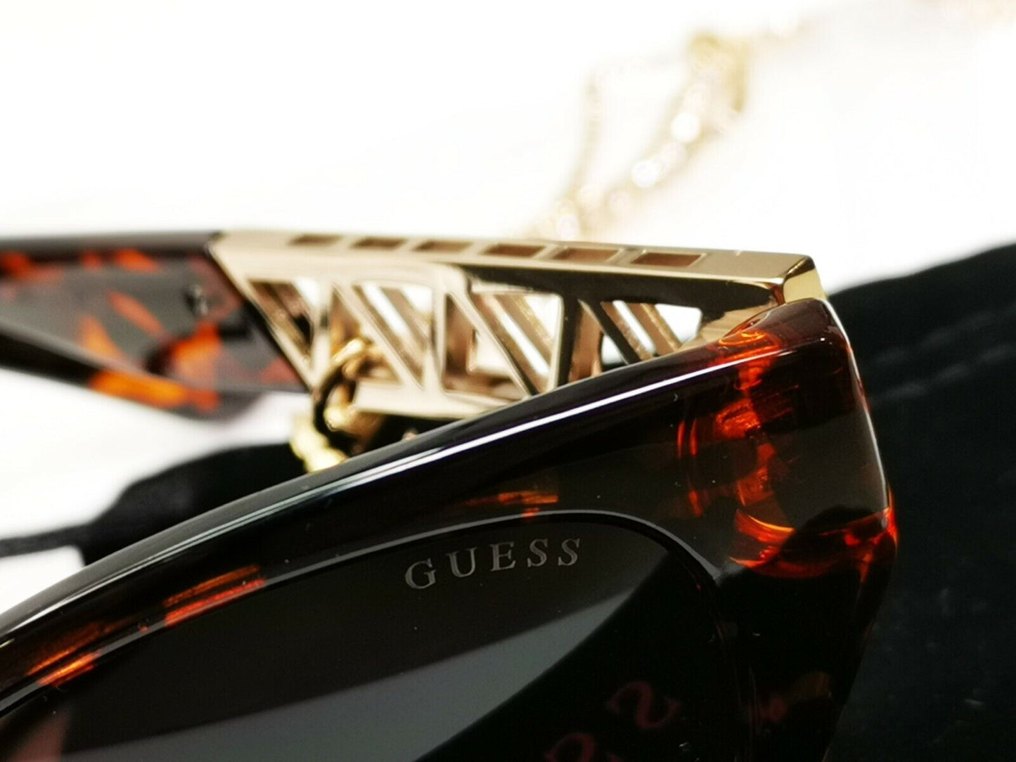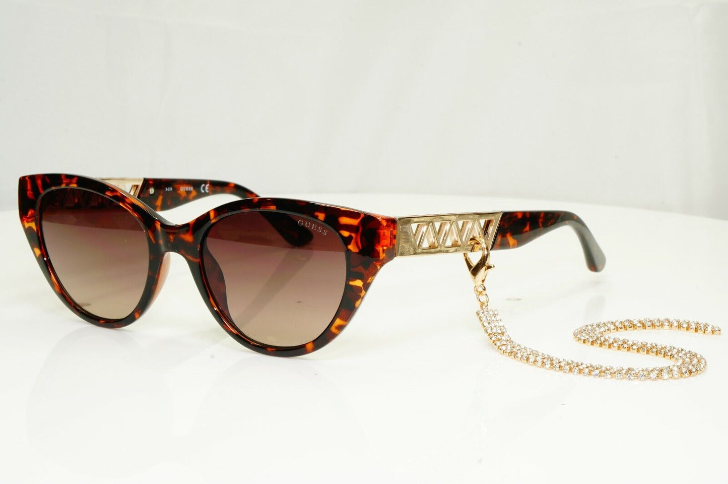 Authentic GUESS Womens Sunglasses Brown Gold Crystal Diamante Chain GU 7690 52F