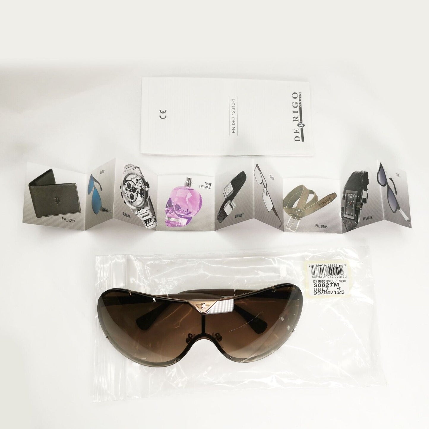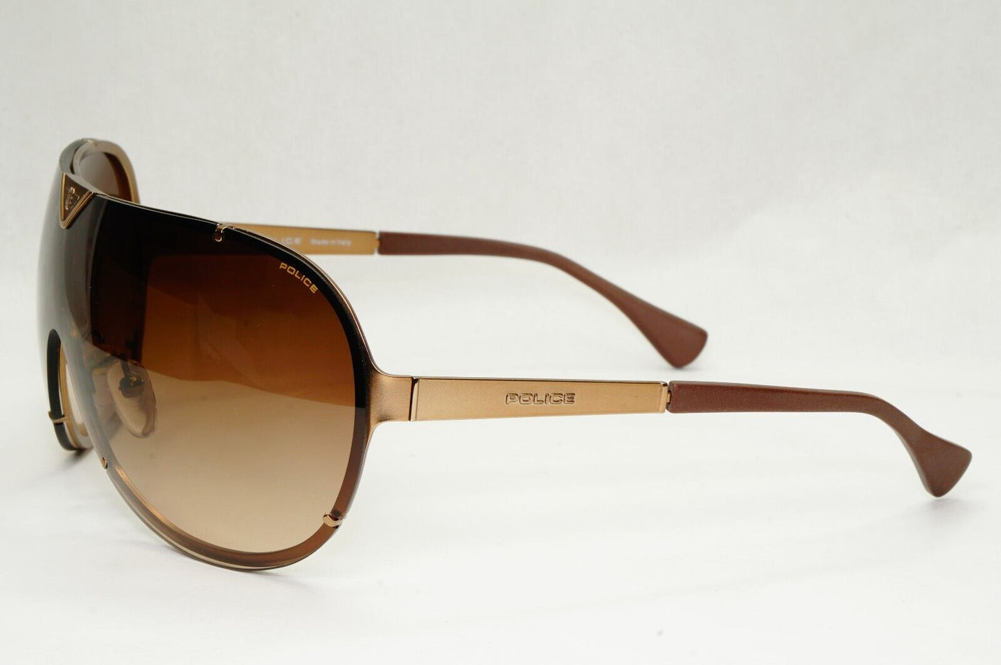 Authentic POLICE Mens Sunglasses Designer Brown Gold Shield Ski S8827 COL 08L7