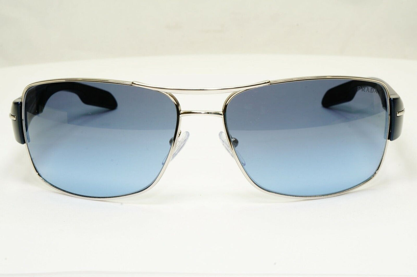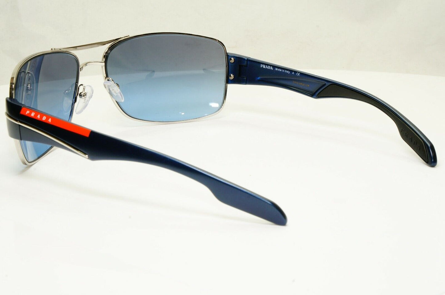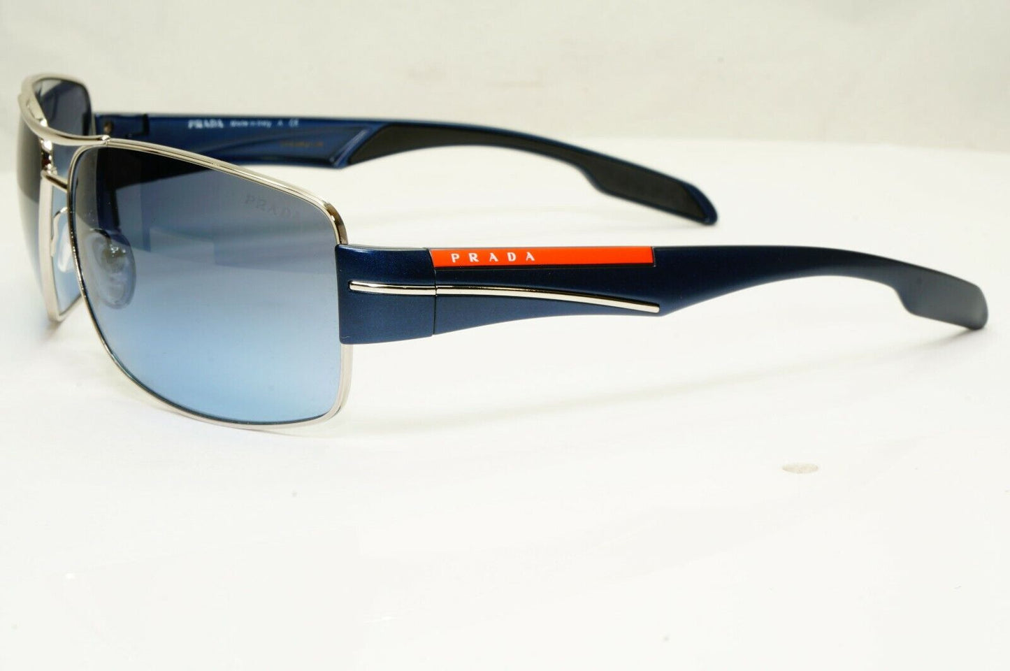 Authentic Prada Mens Blue Square Metal Sunglasses SPS 53N 1BC-5I1 Red Stripe