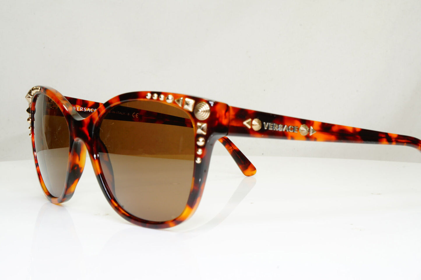 Authentic VERSACE Womens Sunglasses Brown Gold Square Studded 4270 5074/13 29143