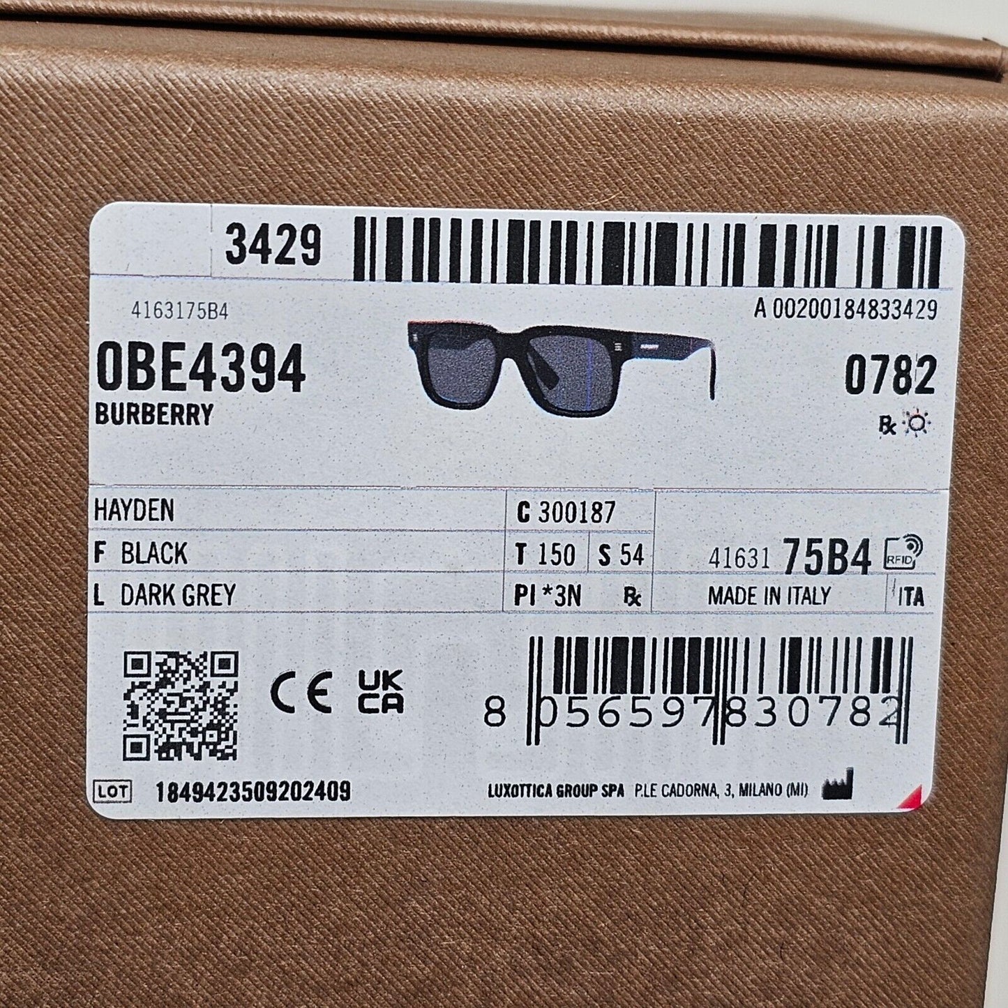 Burberry Sunglasses Hayden Black Square Dark Grey BE 4394 3001/87 54mm