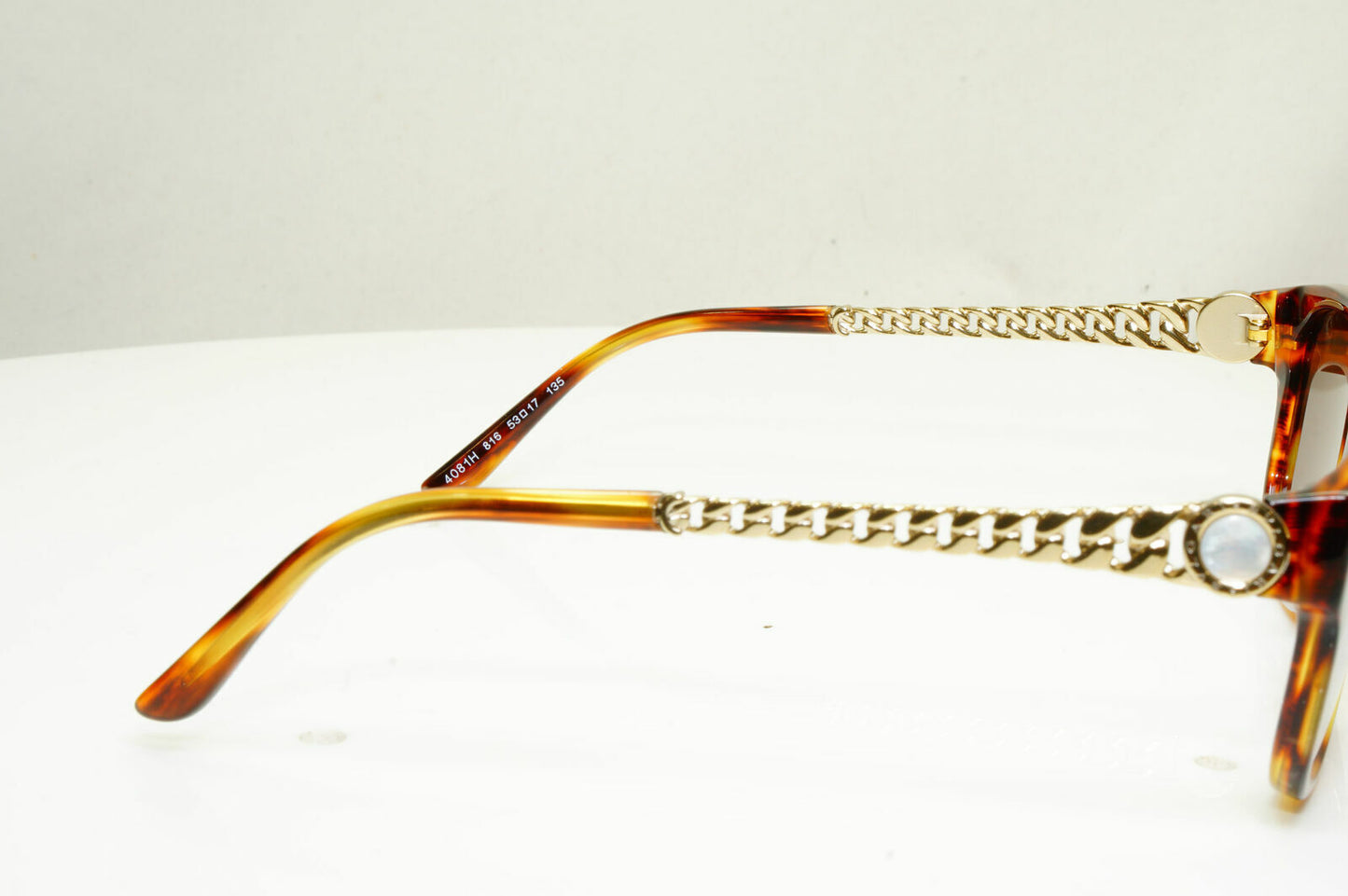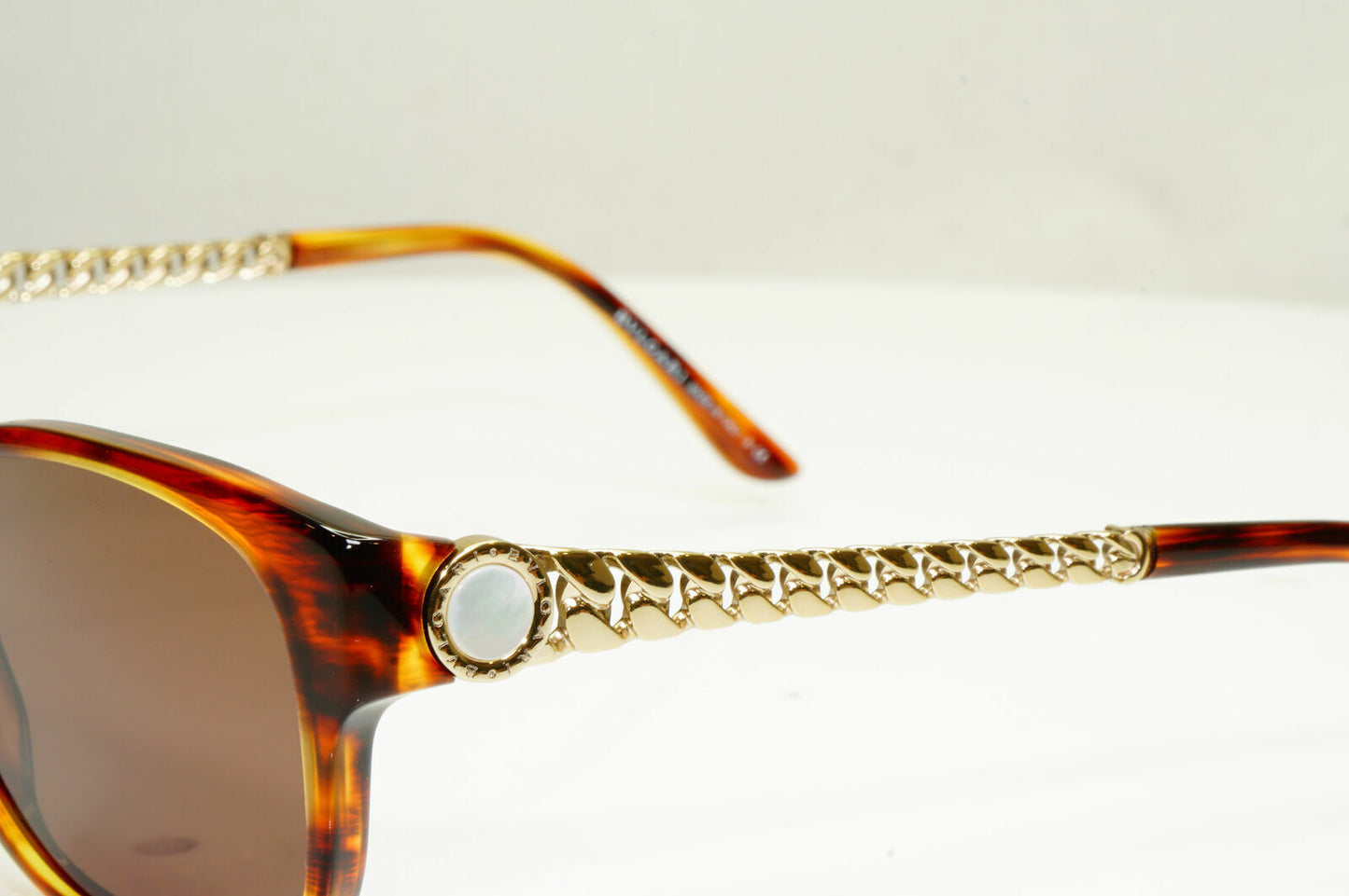 Bvlgari Gold Pearl Sunglasses Brown Rectangle Chain Womens 4081 816 30416