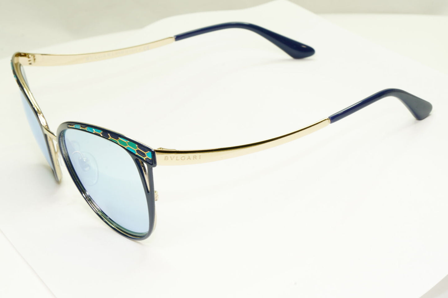 Bvlgari Mirror Gold Blue Sunglasses Square Green Scales BV 6083 2020/6J 050822