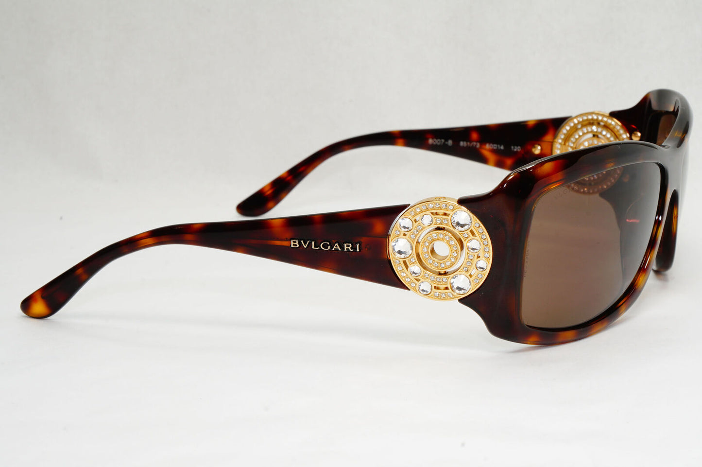 Bvlgari Sunglasses Crystal Brown Tortoiseshell Square 8007-B 851/73 050124