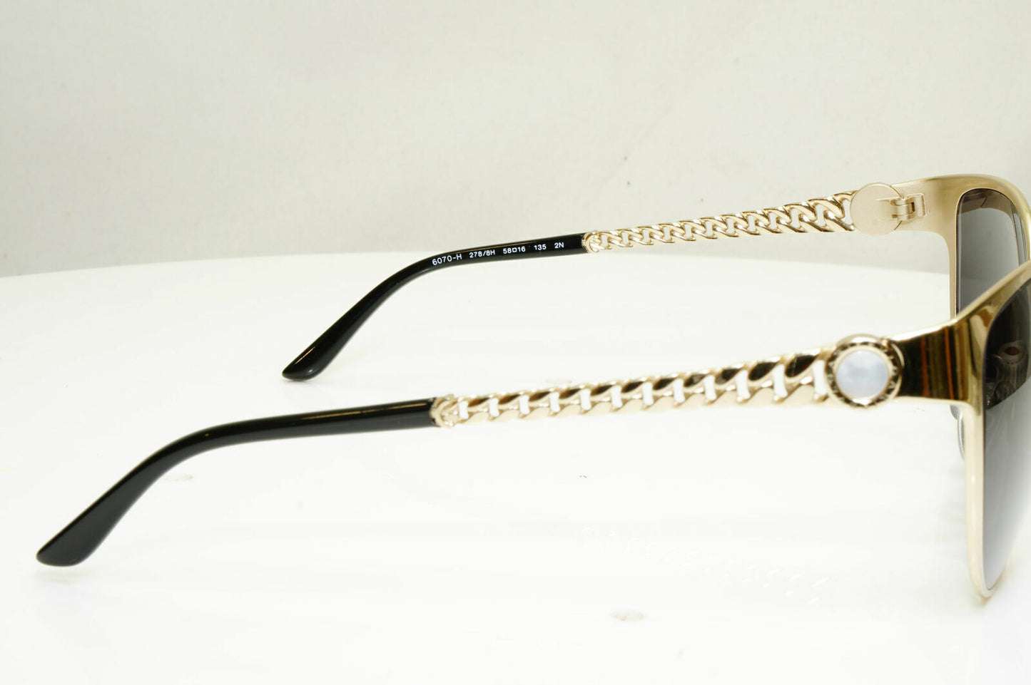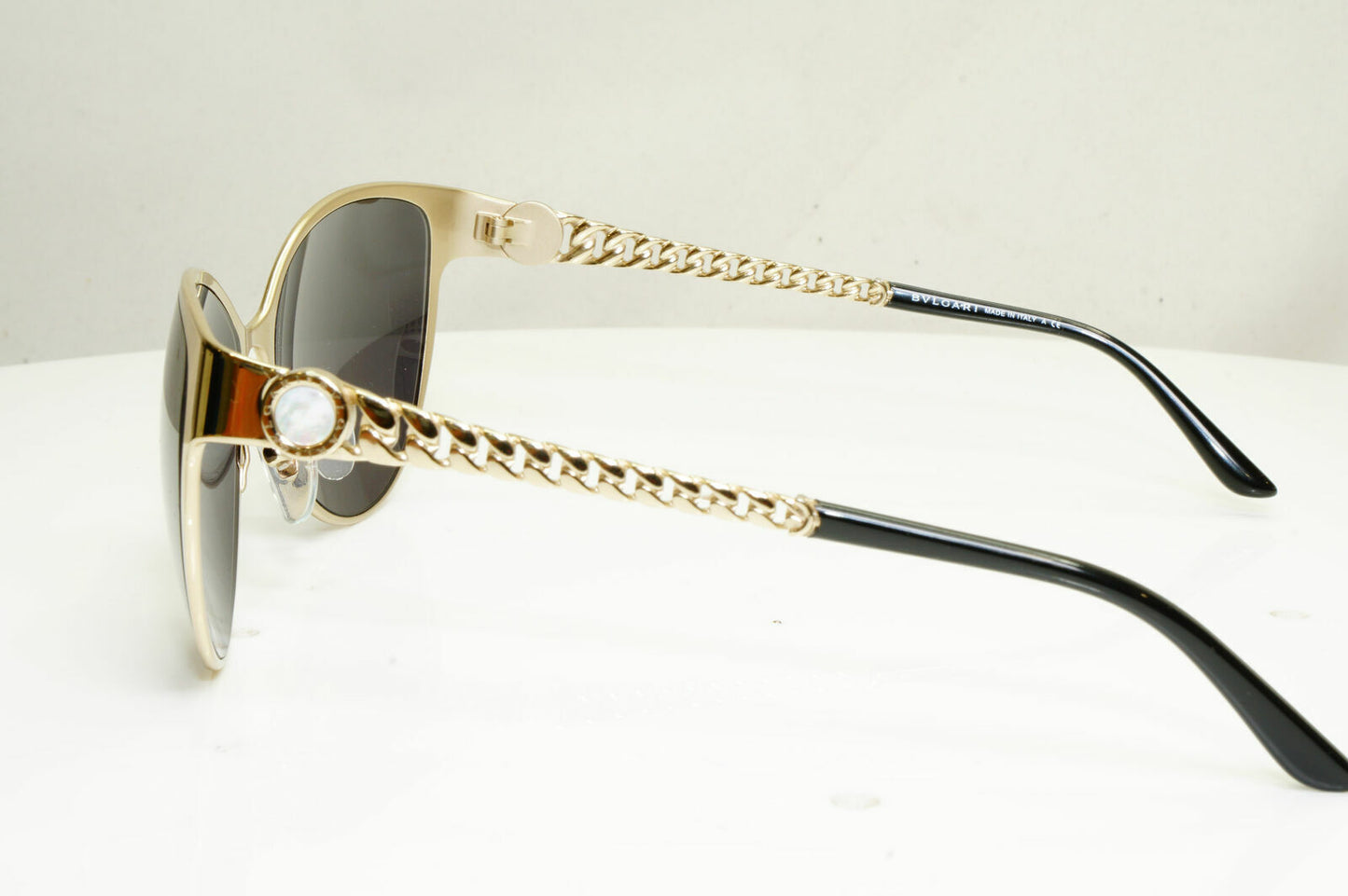 Bvlgari Sunglasses Pearl Gold Chain Black Metal Square Women 6070-H 278/8H 30617