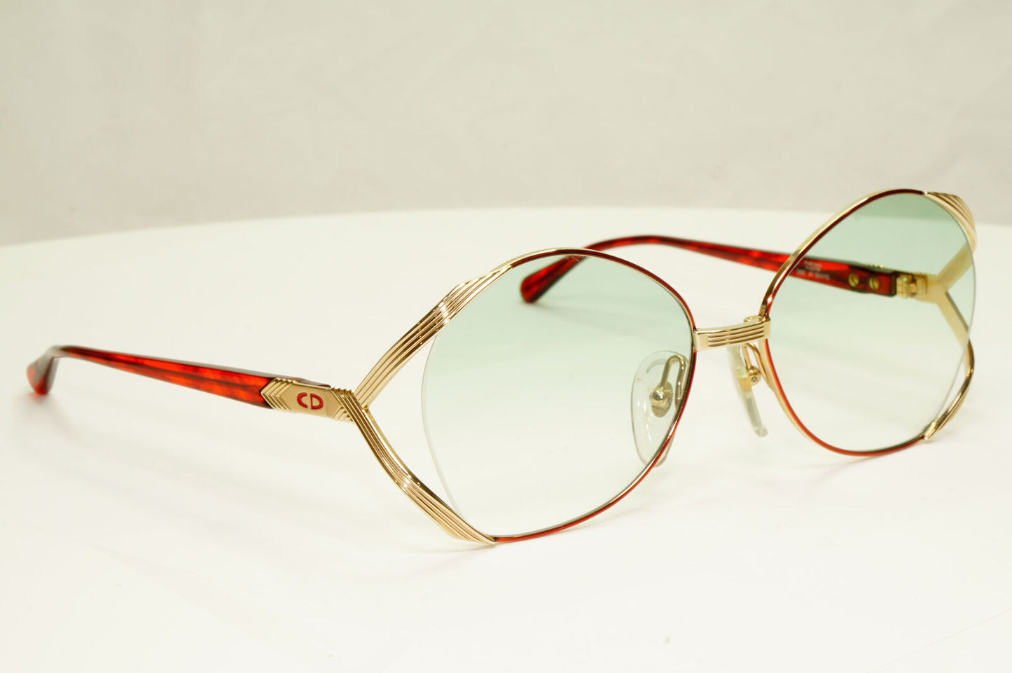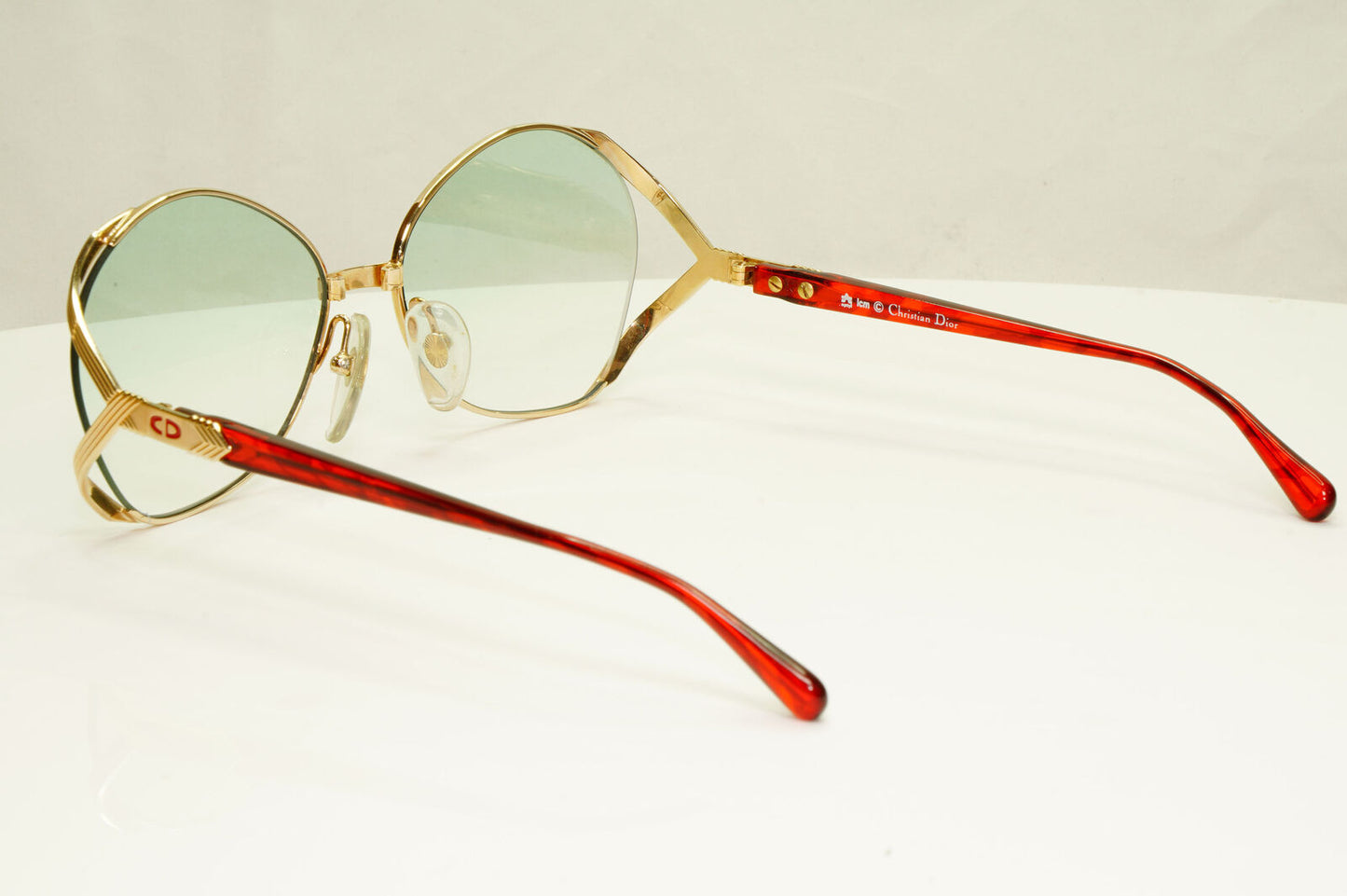 Dior 1990s Gold Sunglasses Austria Red Green Vintage Square Womens 2692 43