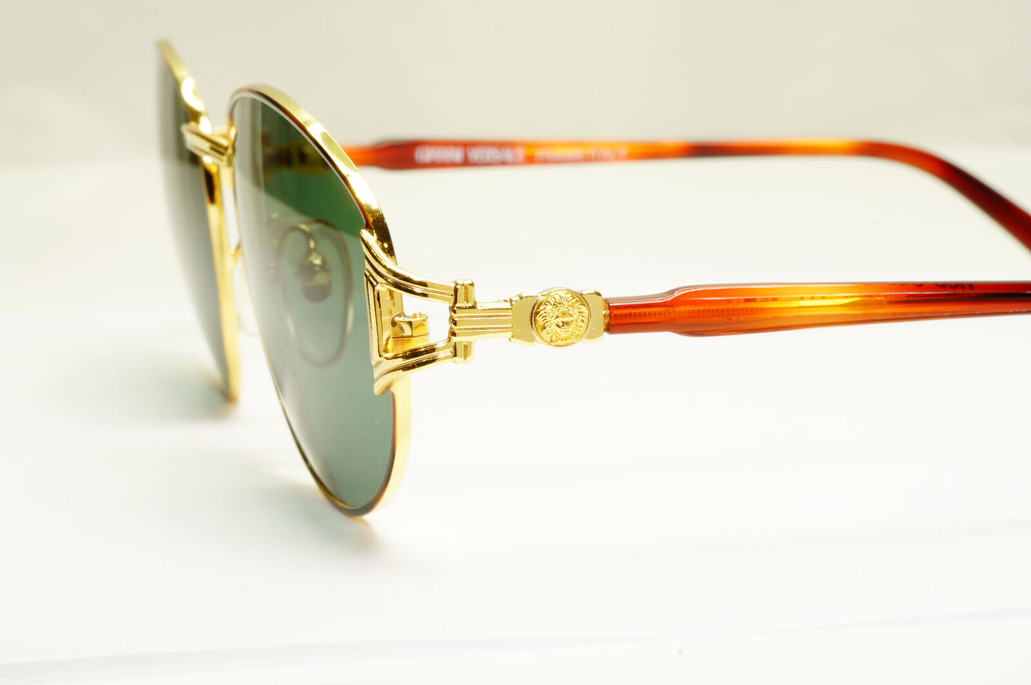 Gianni Versace 1995 Vintage Gold Medusa Green Brown Sunglasses MOD G28 COL 14L B
