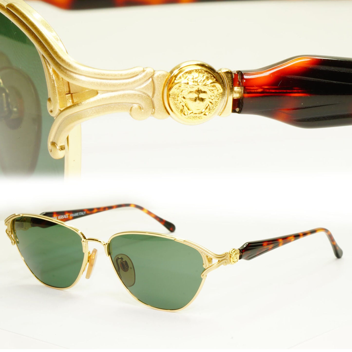 Gianni Versace 1995 Vintage Gold Medusa Green Brown Sunglasses MOD G35 COL 03L B
