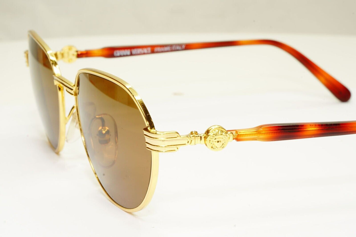 Gianni Versace 1995 Vintage Gold Medusa Unisex Brown Sunglasses MOD G52 COL 17L