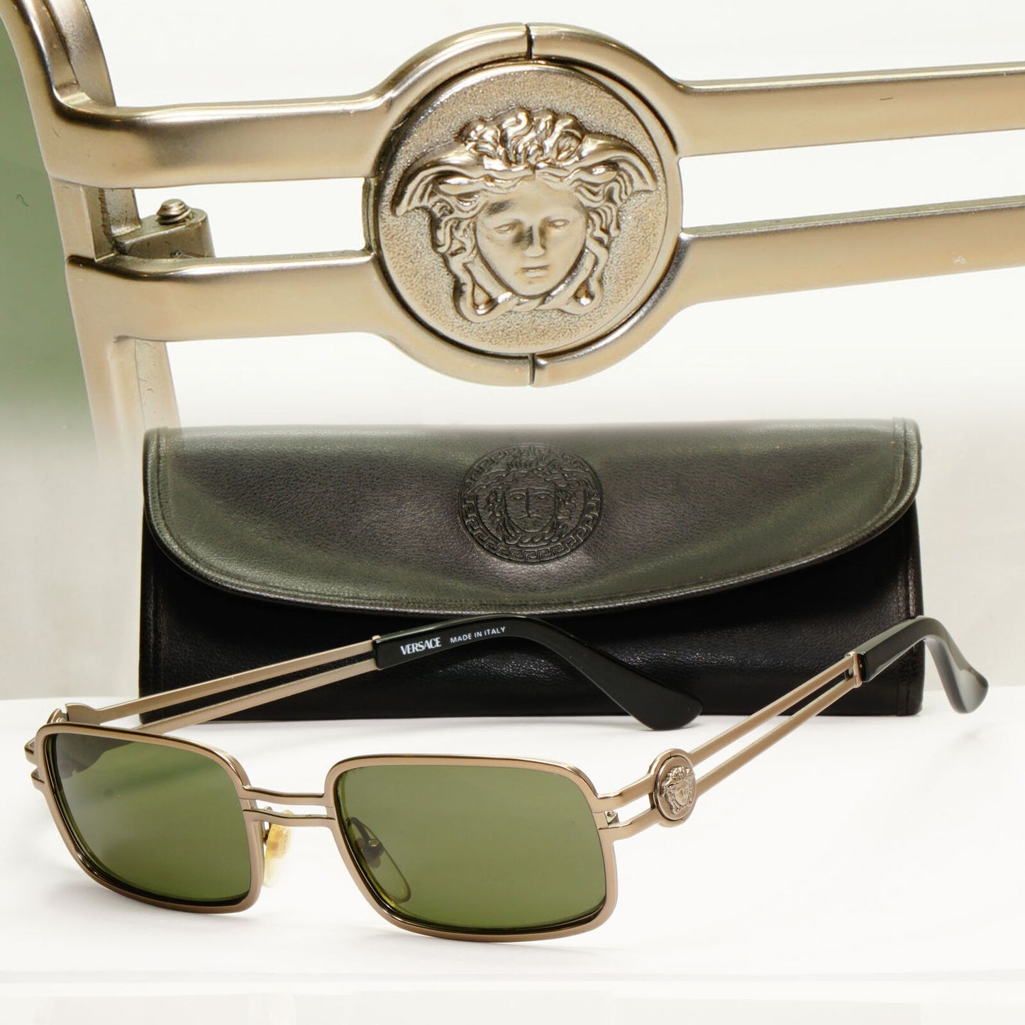 Gianni Versace 1996 Sunglasses Medusa Gunmetal Green MOD S53 COL 948 311022