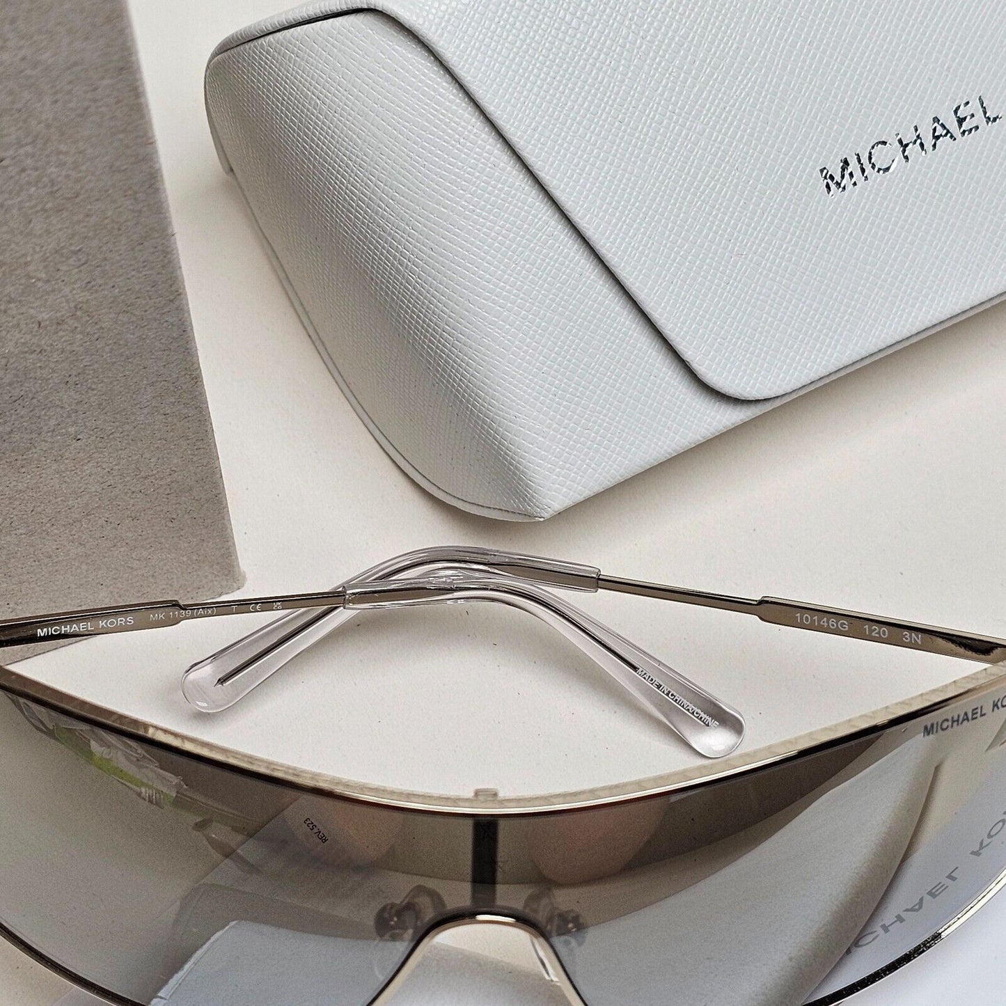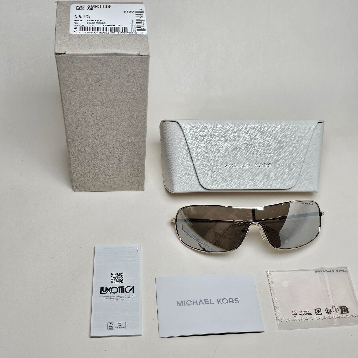 Michael Kors Sunglasses Light Gold Silver Mirror Shield Metal MK 1139 Aix 10146G