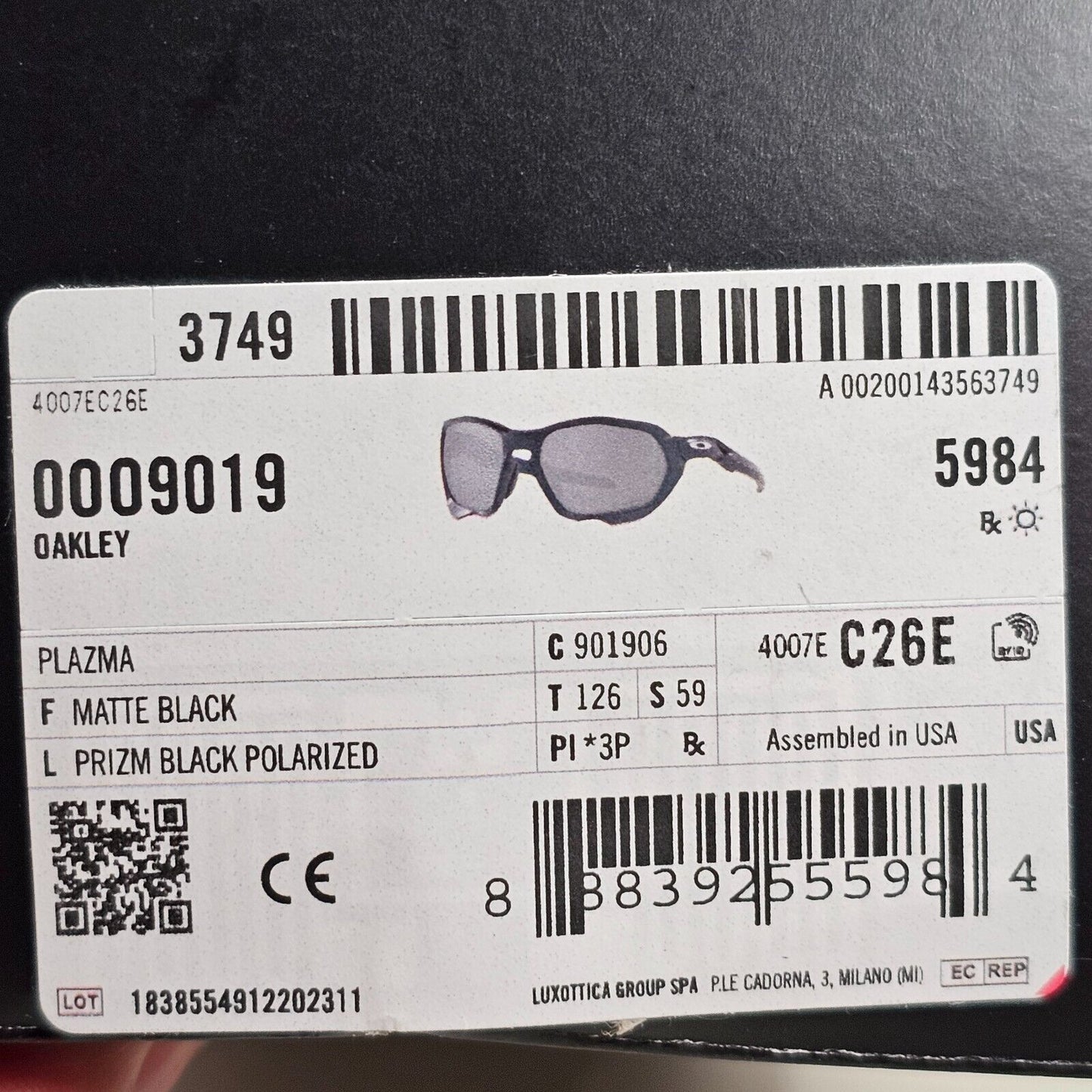 Oakley Sunglasses Plazma Polarised Black Matte Prizm Square Wrap OO 9019 06