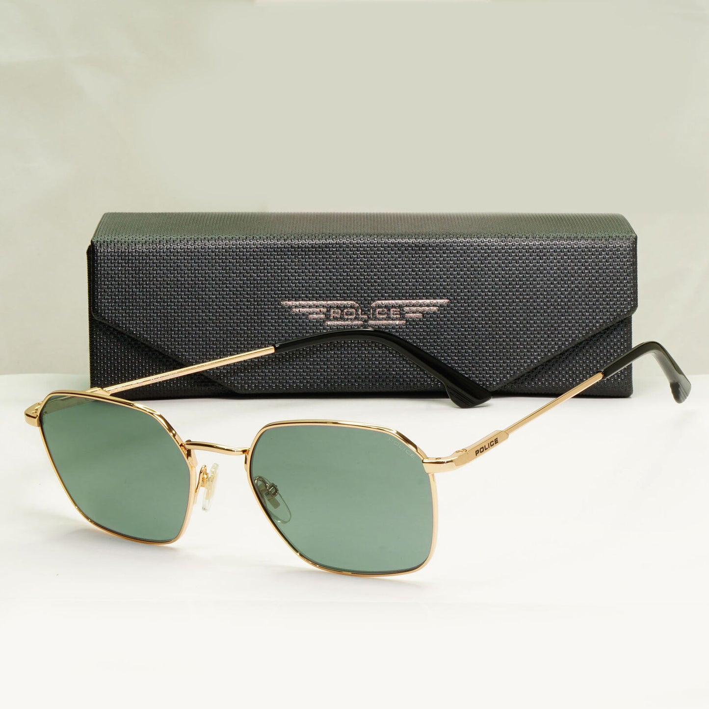 Police Gold Green Sunglasses Metal Mens Hexagonal Tuxedo 1 SPL 970C COL 0300