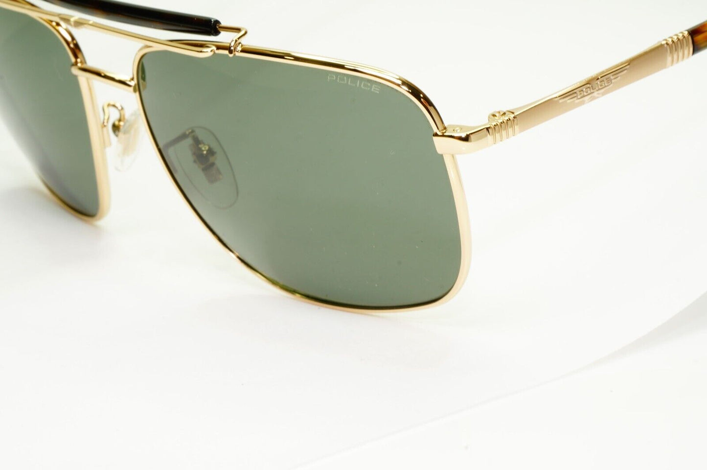 Police Gold Green Sunglasses Pilot Brow Bar Origins 44 SPL D43 COL 349K 61mm