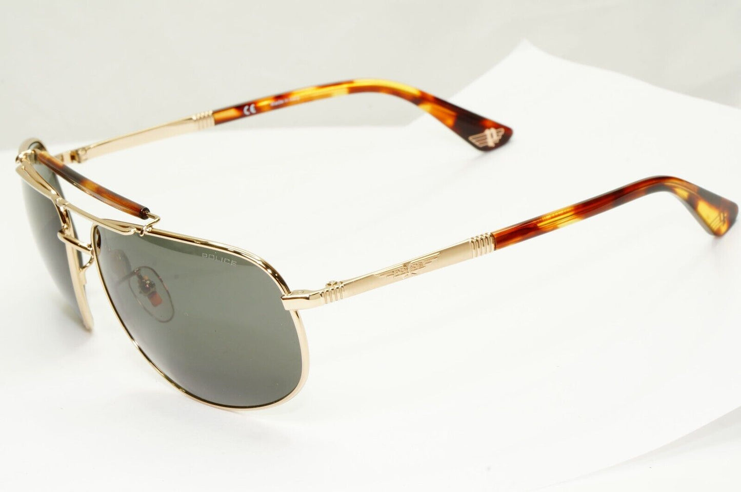 Police Sunglasses Gold Pilot Brown Green Metal SPL D44 Origins 45 COL 0349 62mm