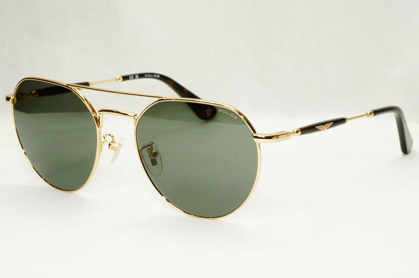 Police Sunglasses Round Pilot Metal Gold Green SPL F14 Urban 7 COL 300Y