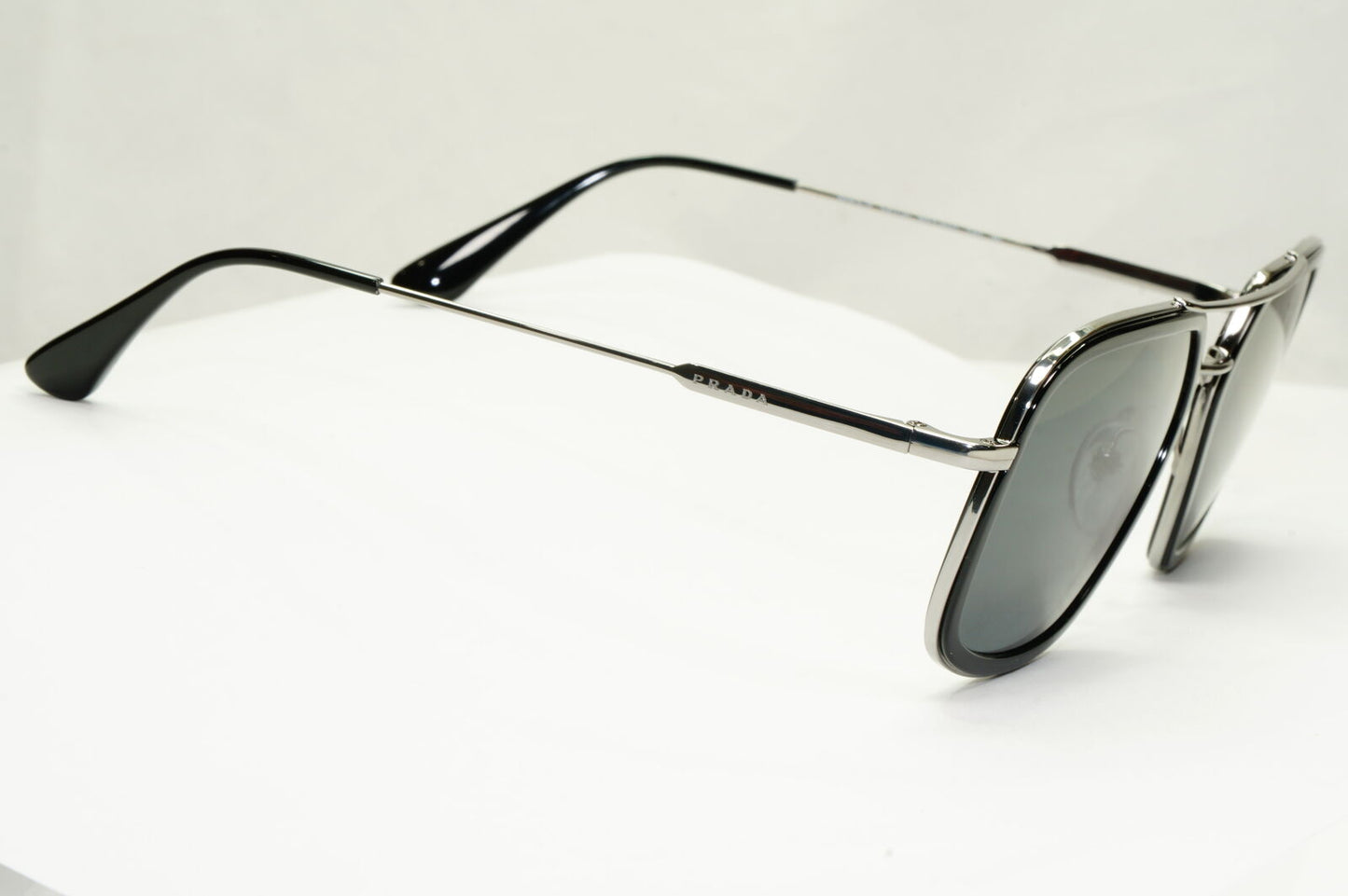 Prada Black Square Sunglasses Silver Pilot Metal PR57XS SPR 57X M4Y-5S0