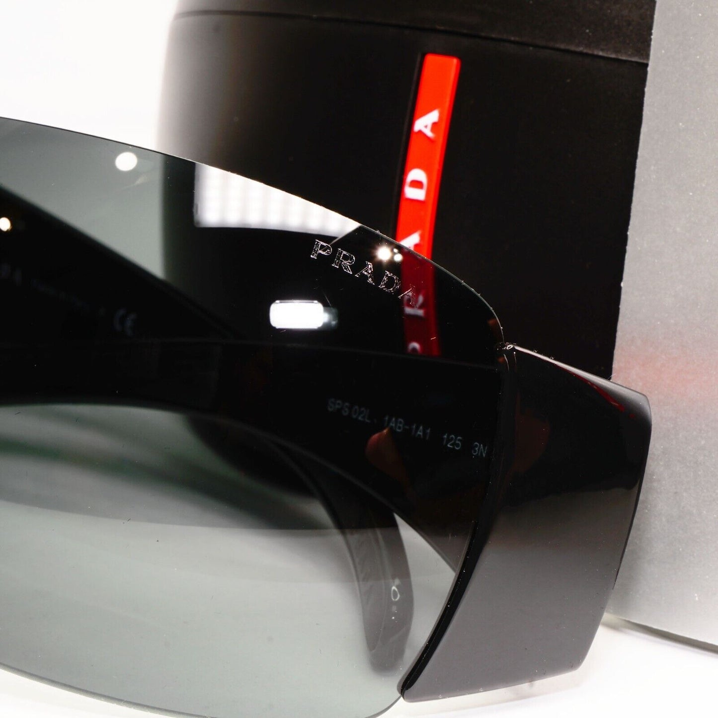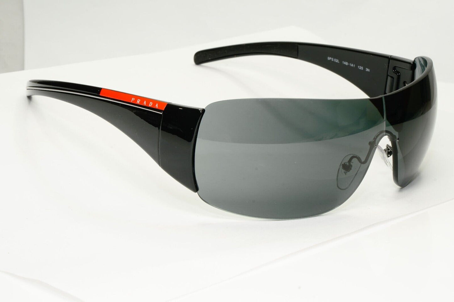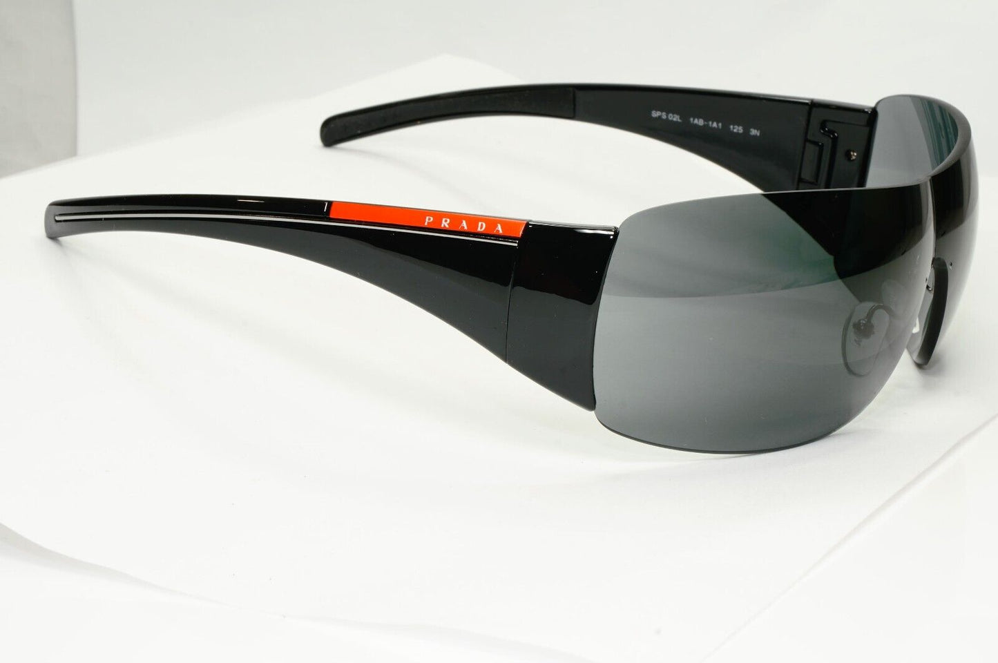 Prada Black Sunglasses Shield Visor Glossy Wrap Sport PS02LS SPS 02L 1AB-1A1