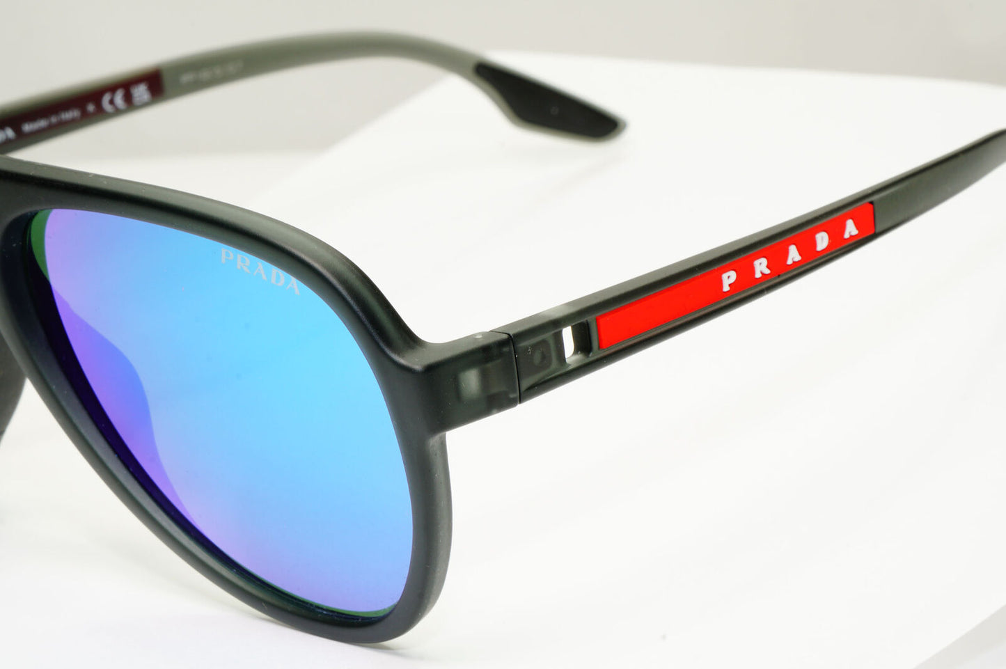 Prada Blue Mirror Sunglasses Pilot Transparent Grey PS06WS SPS 06W 13C-08R 59mm