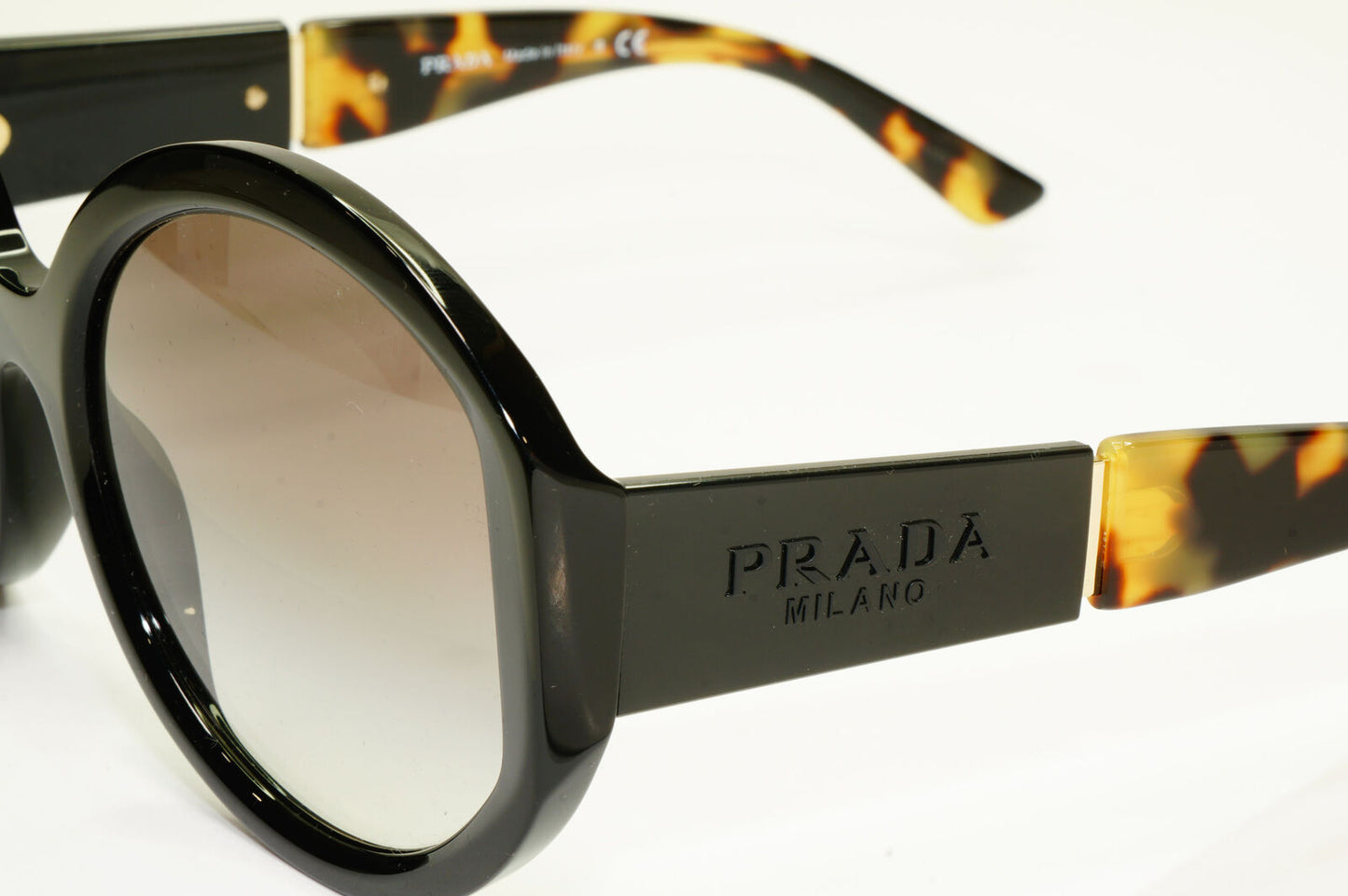 Prada Oversized Black Sunglasses Round Tortoiseshell Big Logo SPR 22X 1AB-0A7