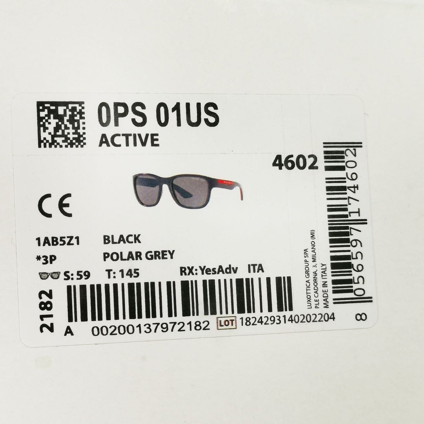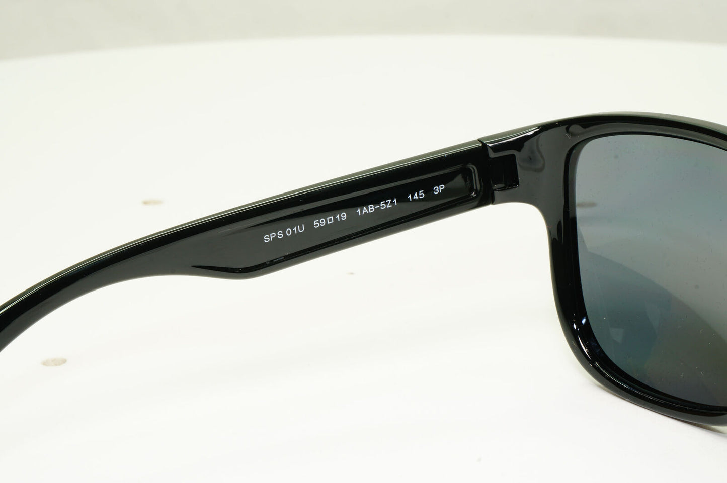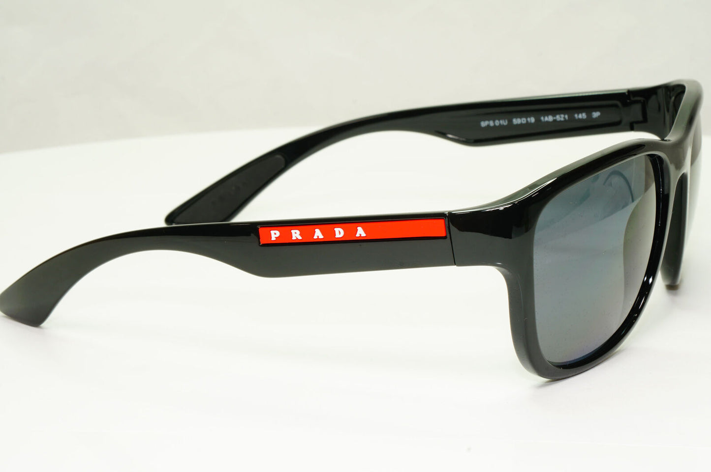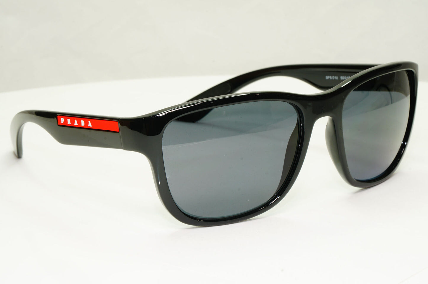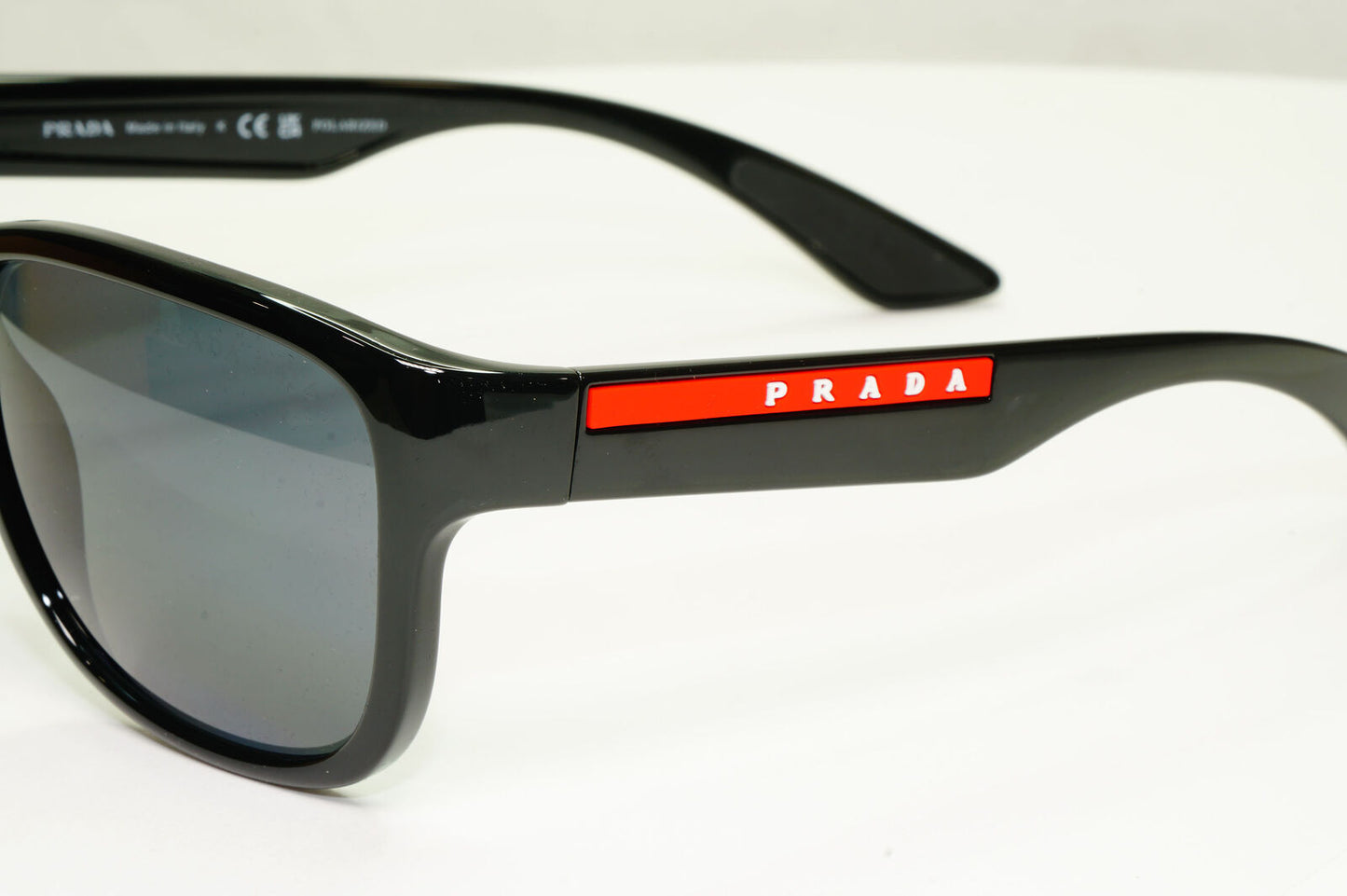 Prada Polarised Black Sunglasses Square Red Stripe PS01US SPS 01U 1AB-5Z1 59mm