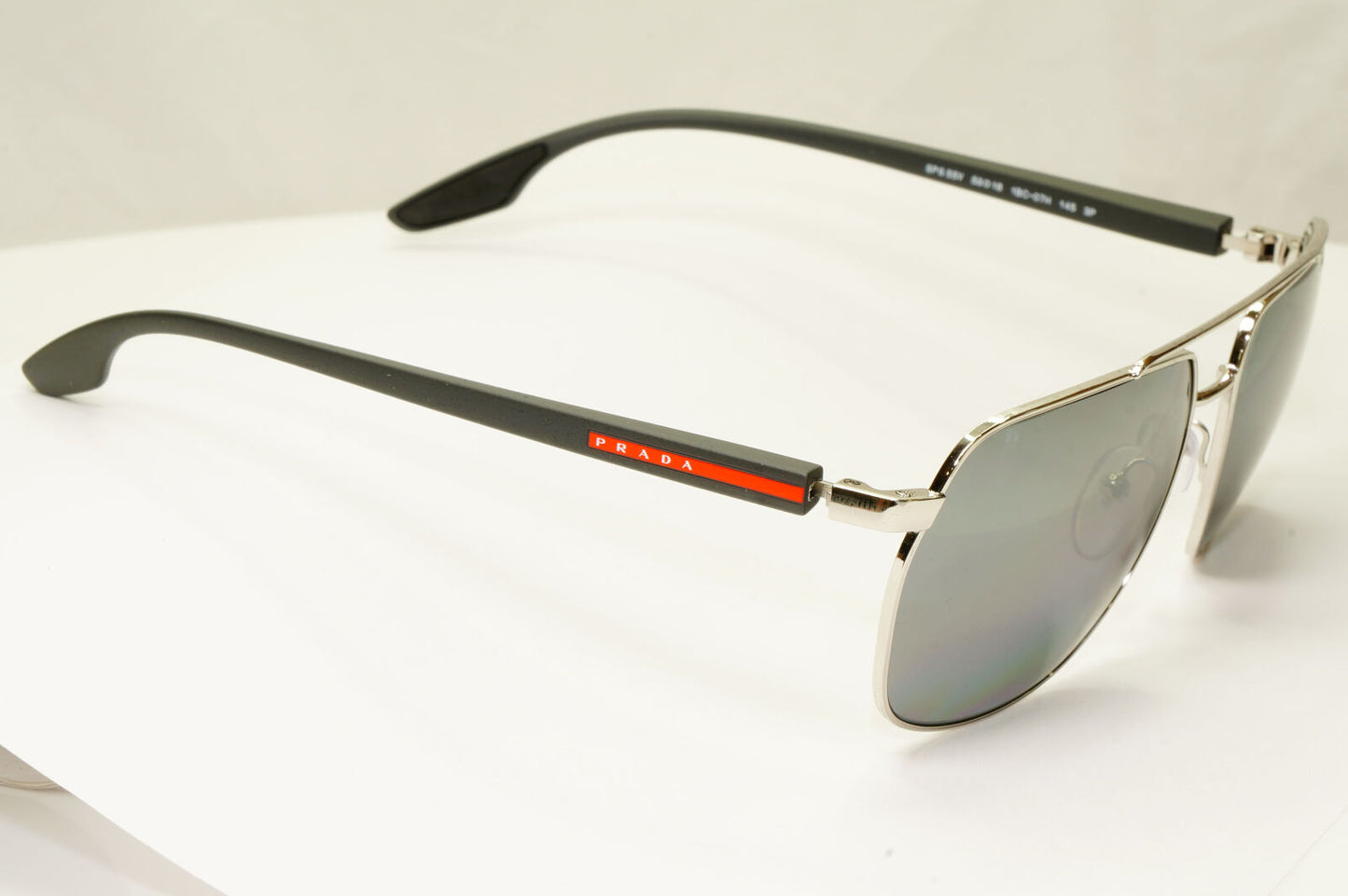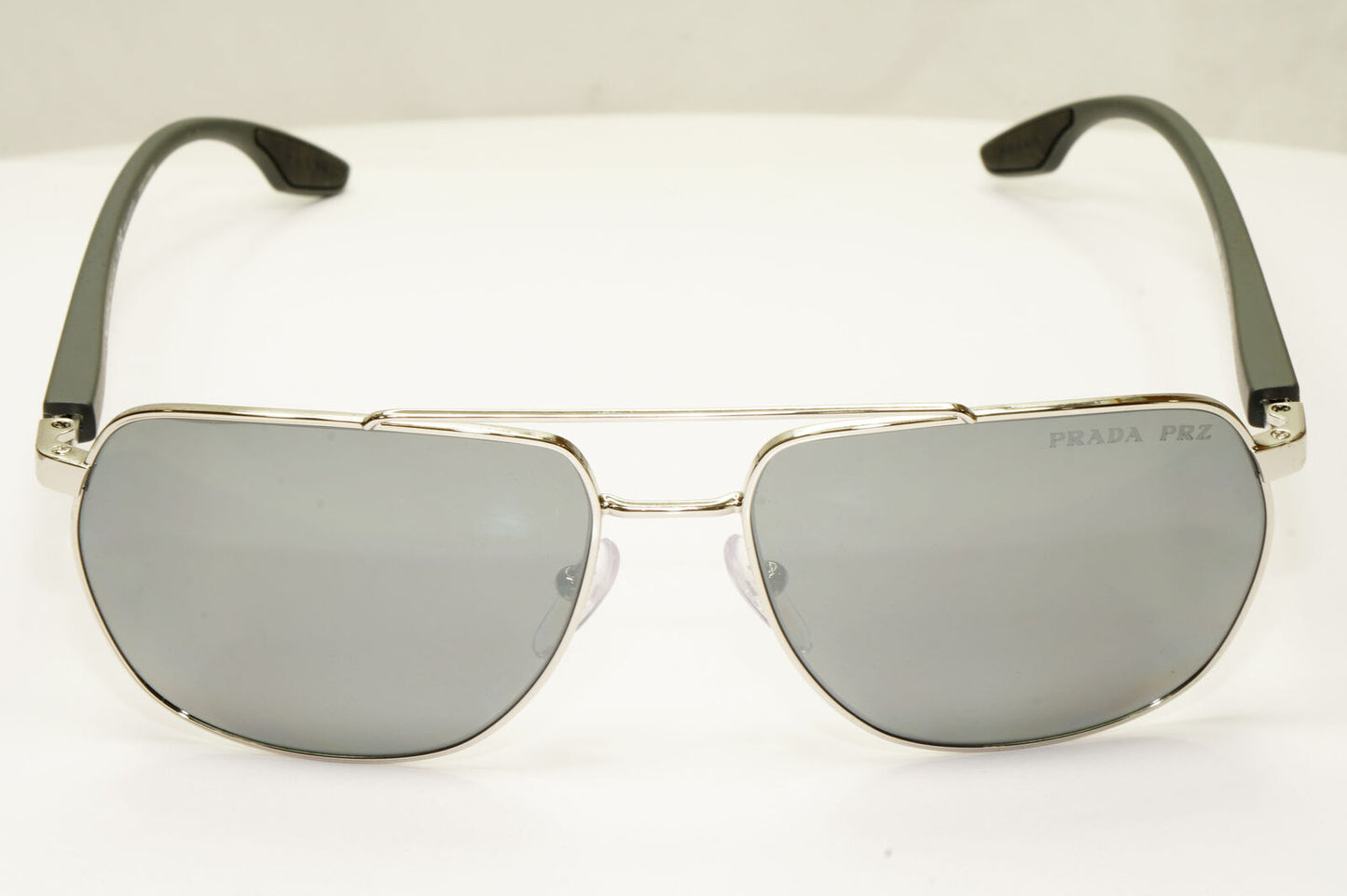Prada Silver Black Polarised Sunglasses Pilot Mens Square SPS 55V PS55VS 1BC-07H