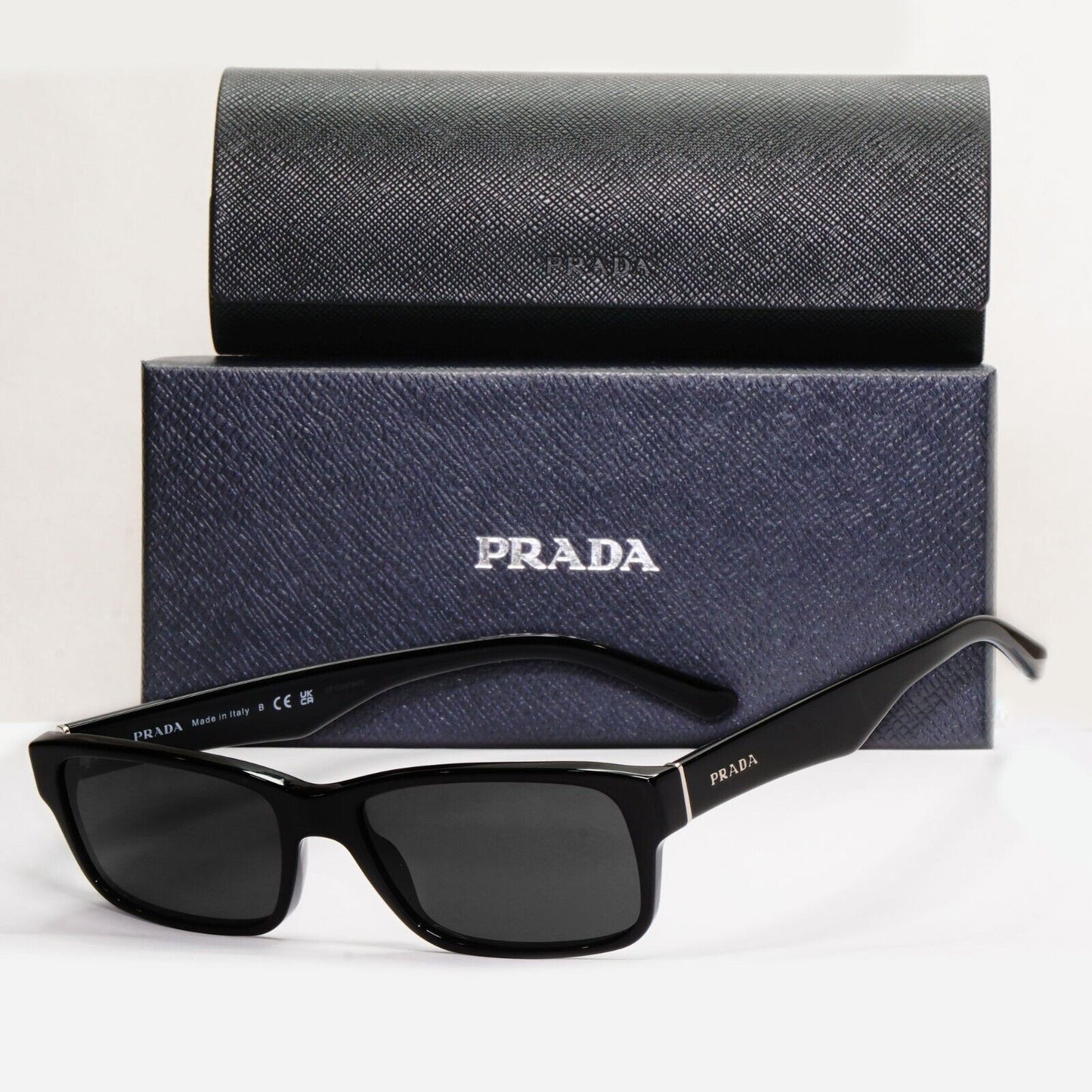 Prada Sunglasses Black Glossy Rectangle Square PR16MV VPR 16M 1AB-1O1 53mm