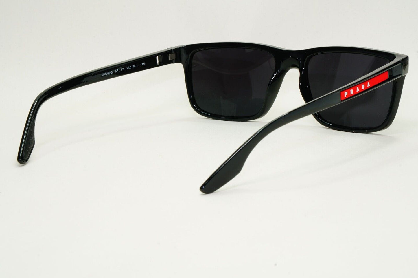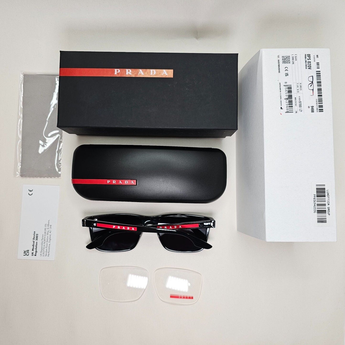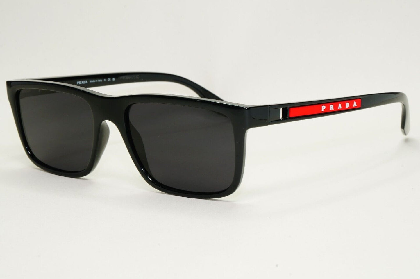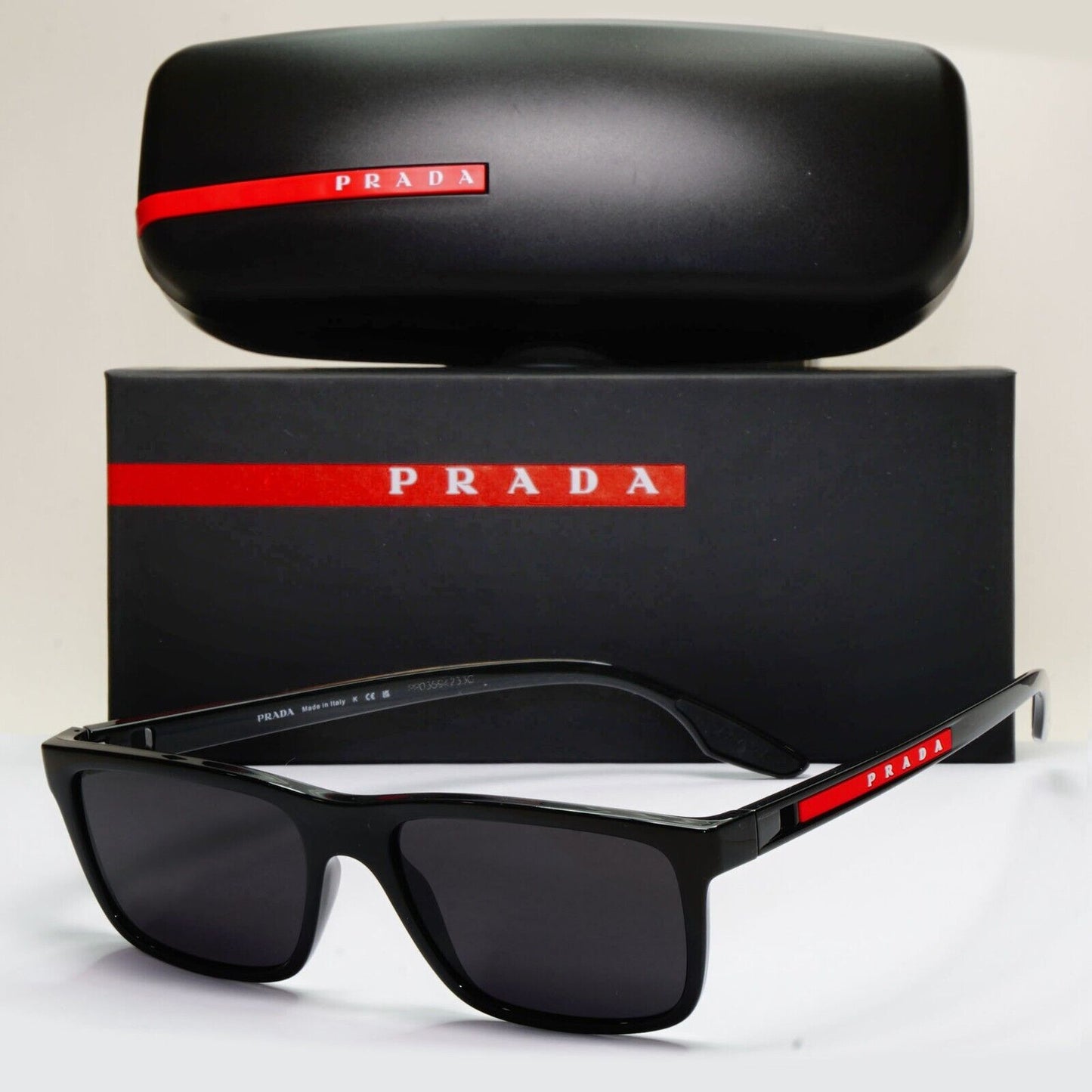 Prada Sunglasses Black Glossy Square Red Linea Rossa PS02OV VPS 02O 1AB-1O1 55mm