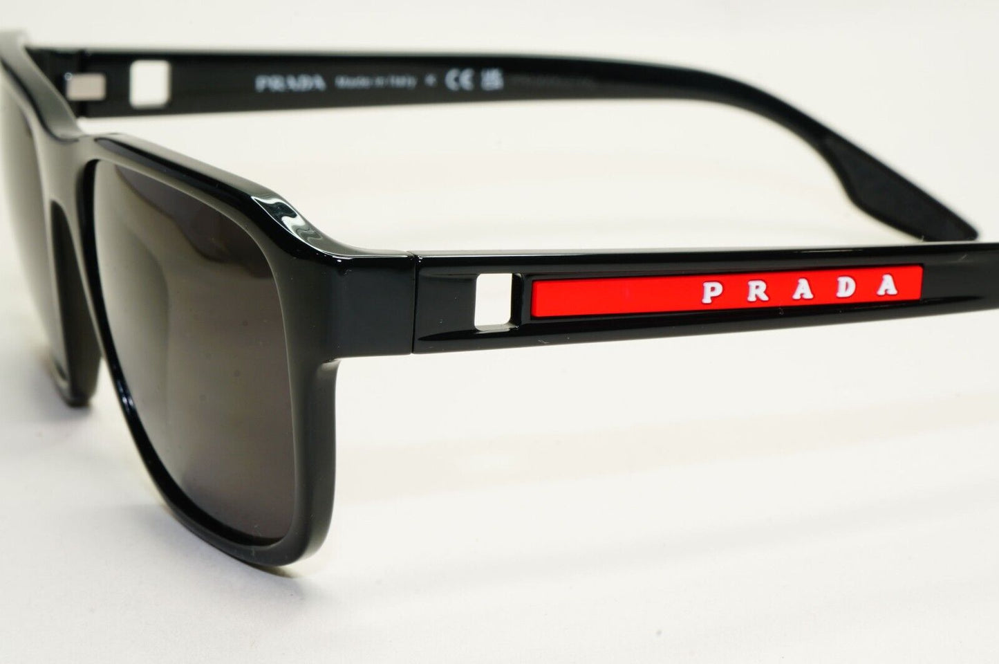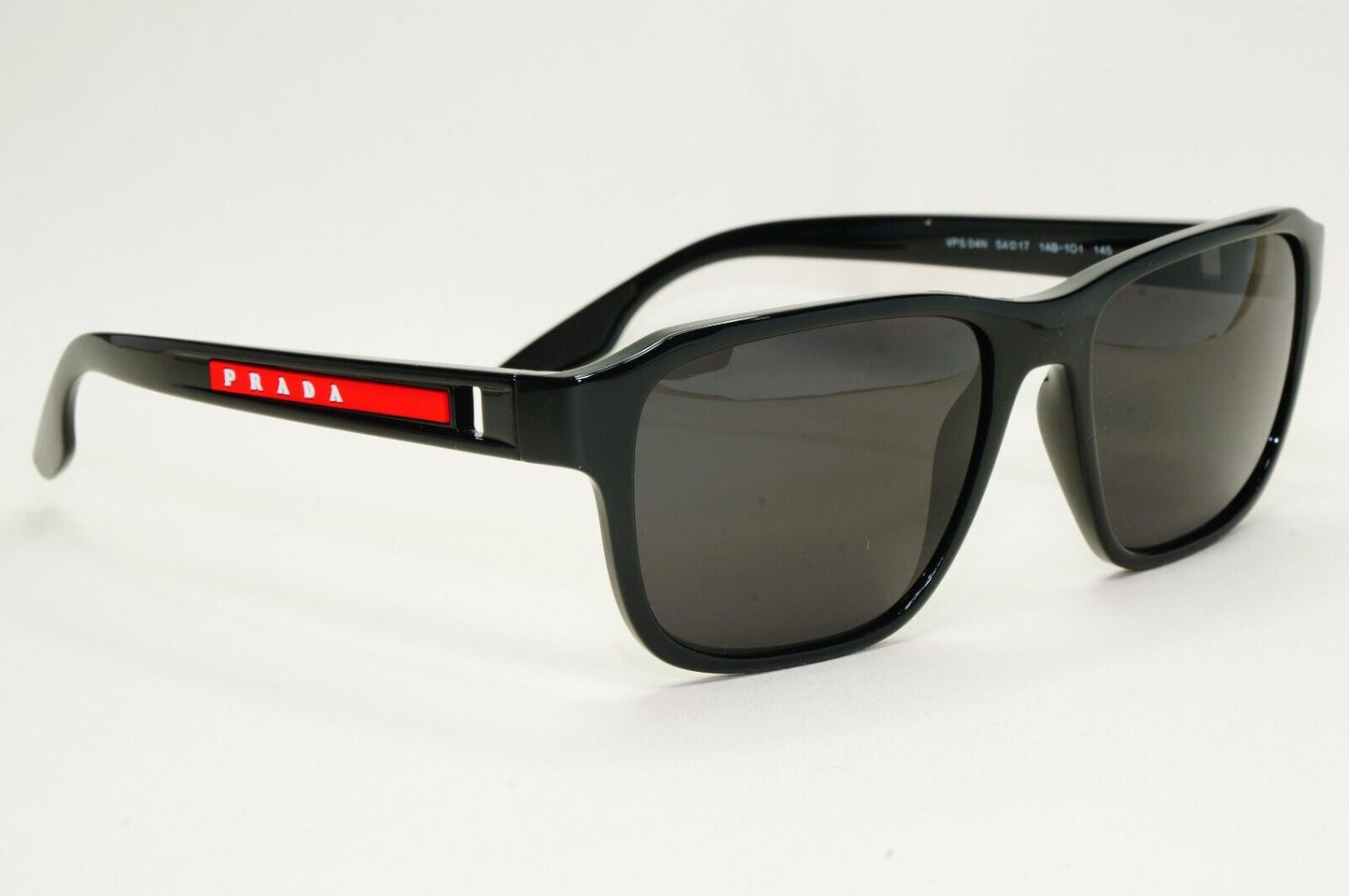Prada Sunglasses Black Glossy Square Red Linea Rossa PS04NV VPS 04N 1AB-1O1 54mm