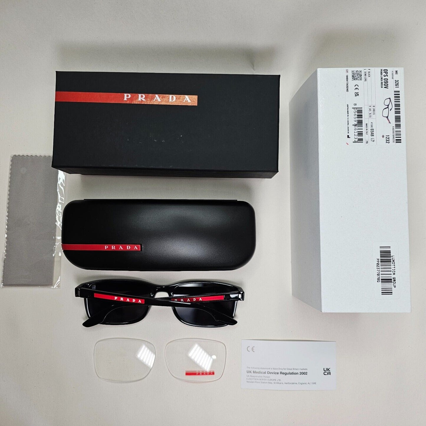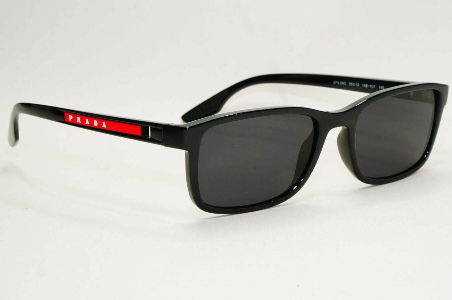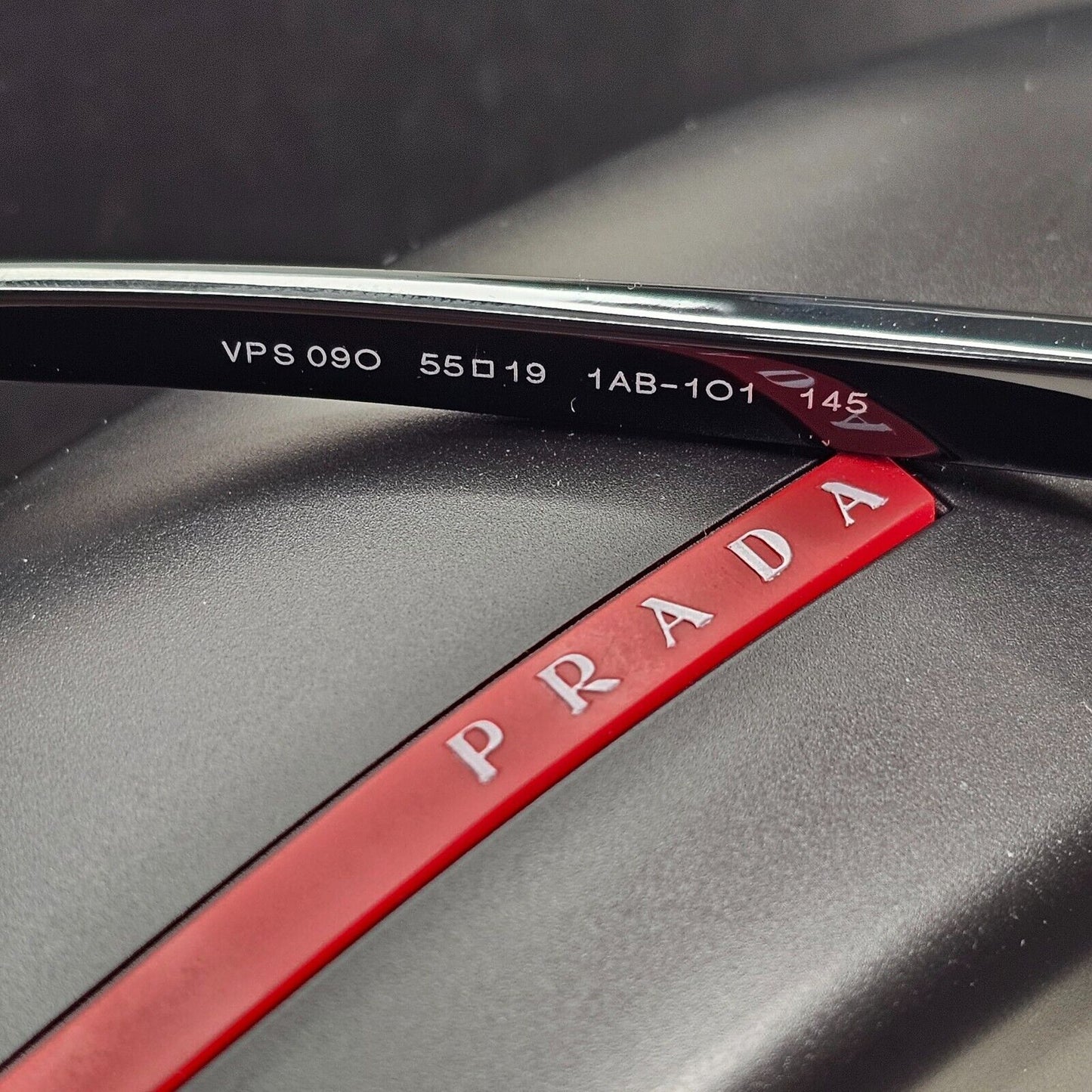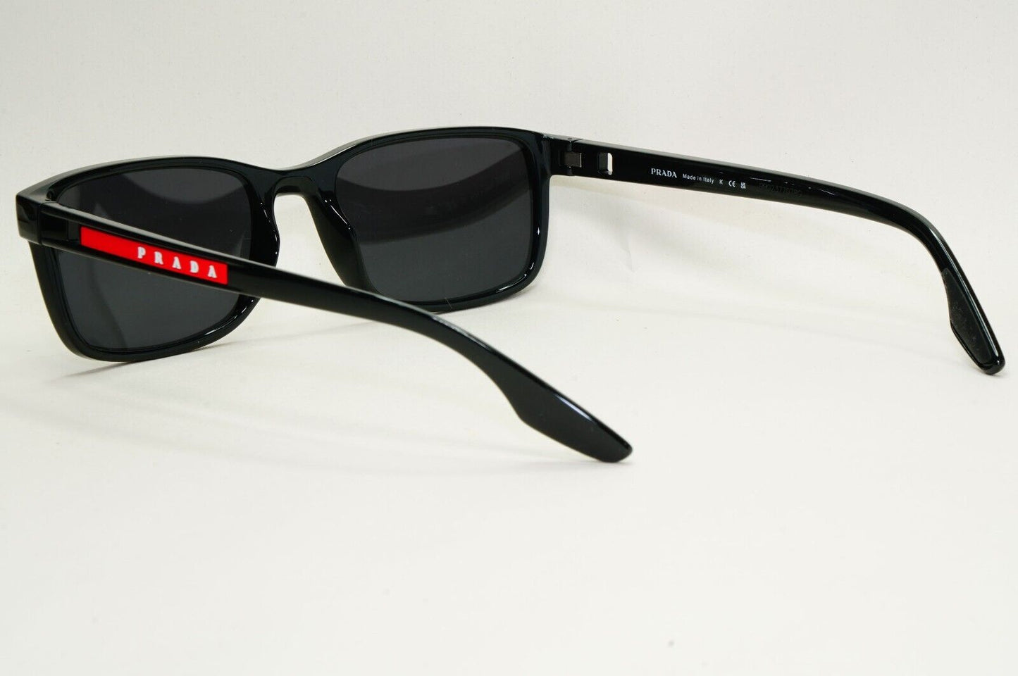 Prada Sunglasses Black Glossy Square Red Linea Rossa PS09OV VPS 09O 1AB-1O1 55mm