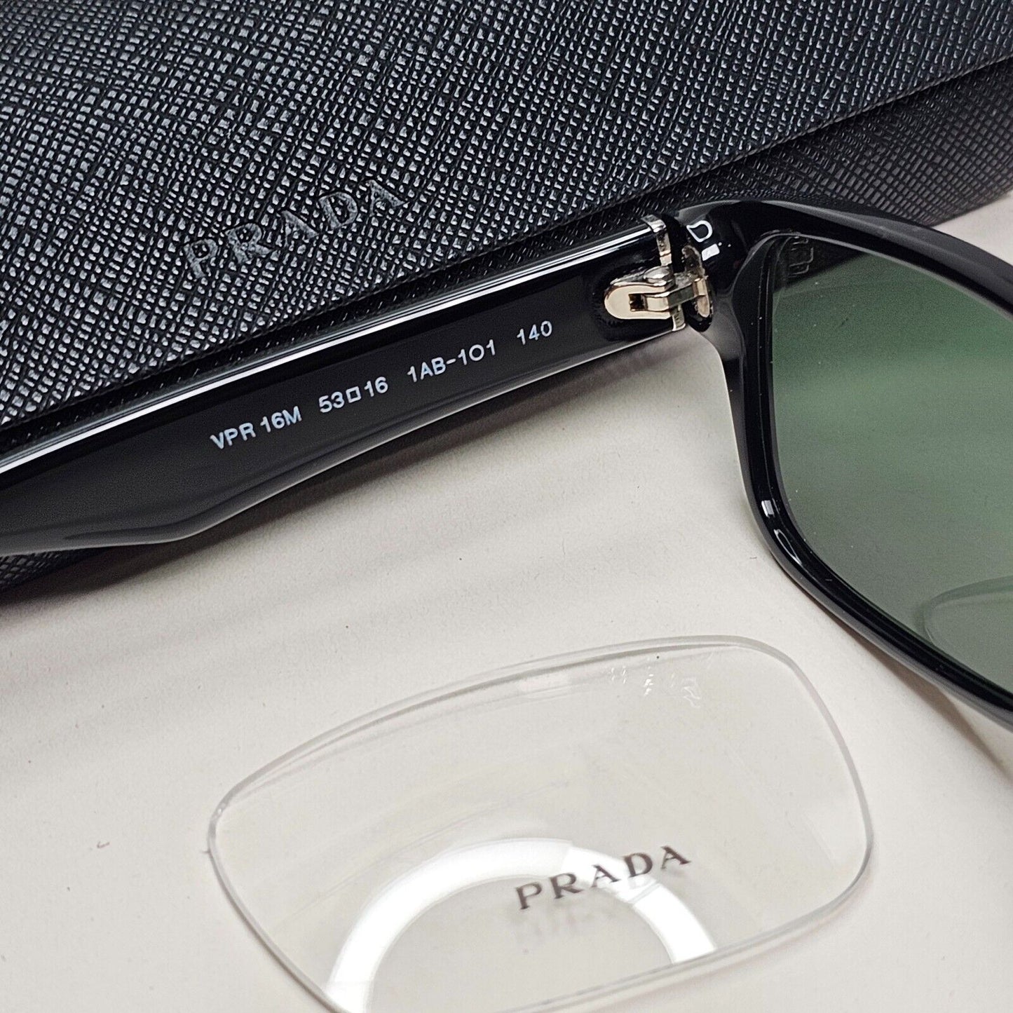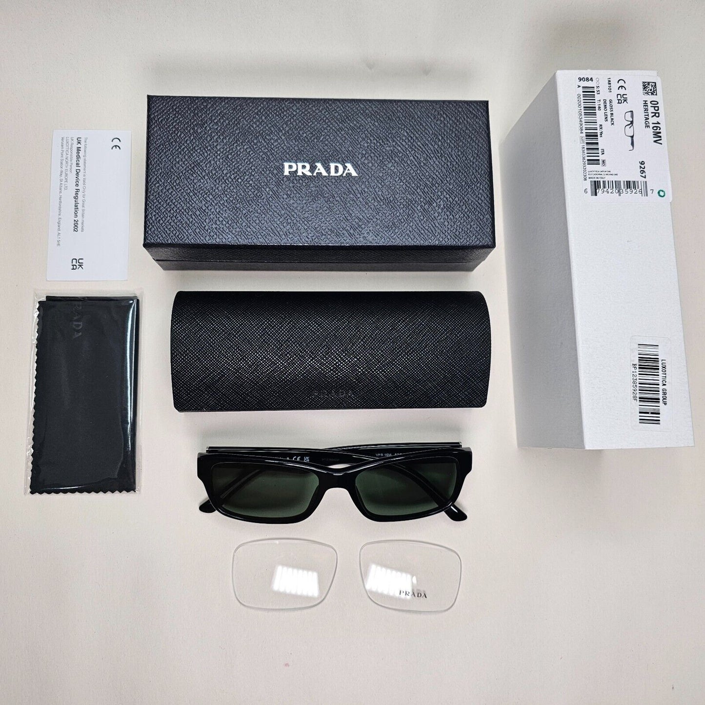 Prada Sunglasses Black Green Glossy Rectangle Square PR16MV VPR 16M 1AB-1O1 53mm