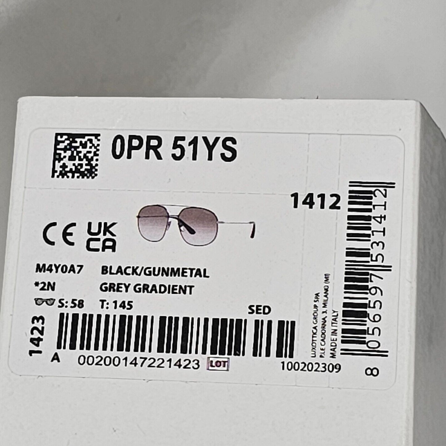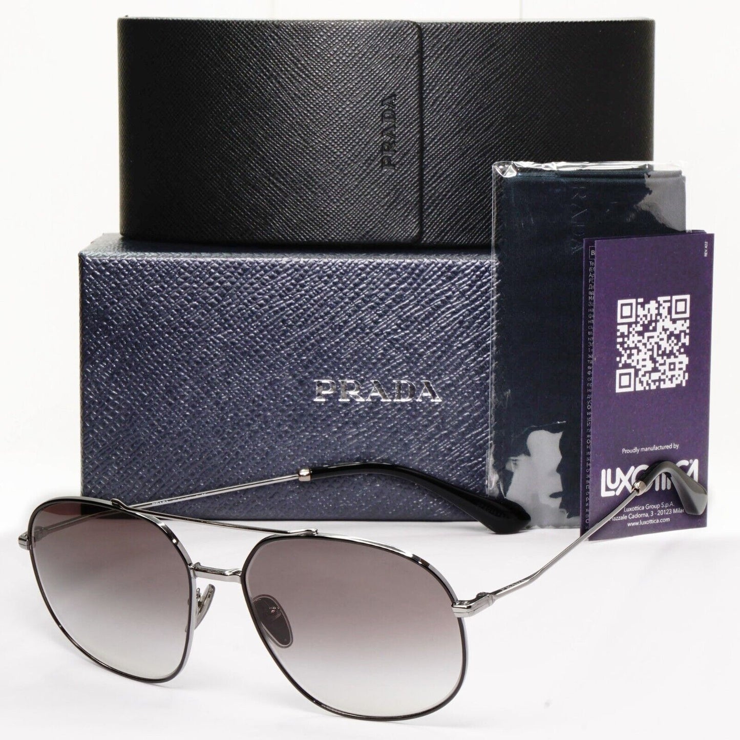 Prada Sunglasses Black Gunmetal Grey Gradient Metal Pilot PR51YS SPR 51Y M4Y-0A7