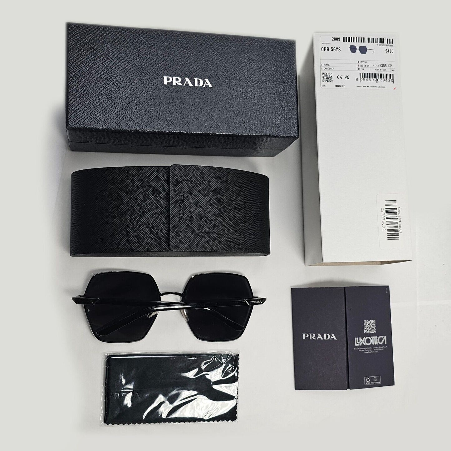 Prada Sunglasses Black Hexagon Angular Square PR56YS SPR 56Y 1AB-5S0 58mm