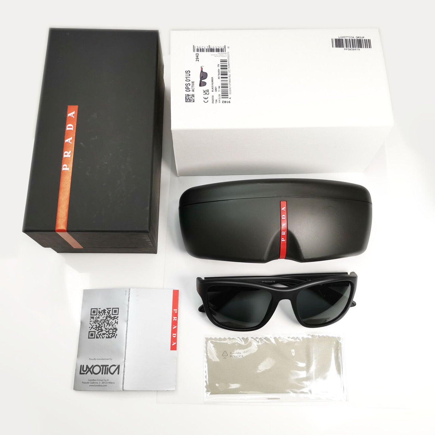 Prada Sunglasses Black Matte Rubber Square Red PS01US SPS 01U DG0-5S0 55mm