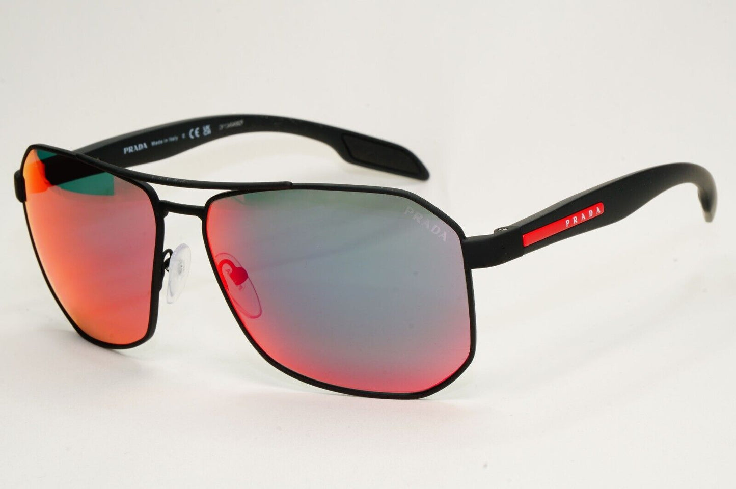 Prada Sunglasses Black Mirror Blue Red Angular Pilot PS51VS SPS 51V DG0-9Q1 62mm