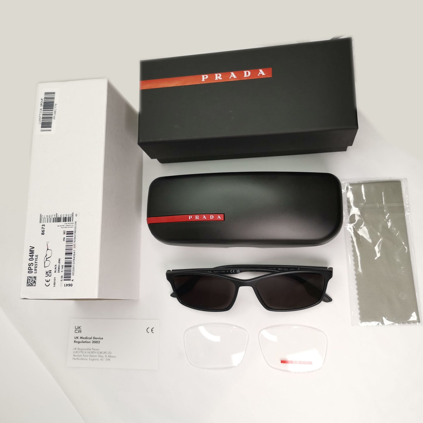 Accessories: Presentation Carton Box. Original Storage Case. Microfibre Cleaning Cloth. Original set of Demo Lenses.