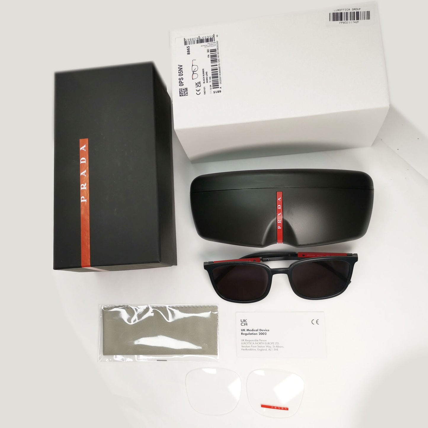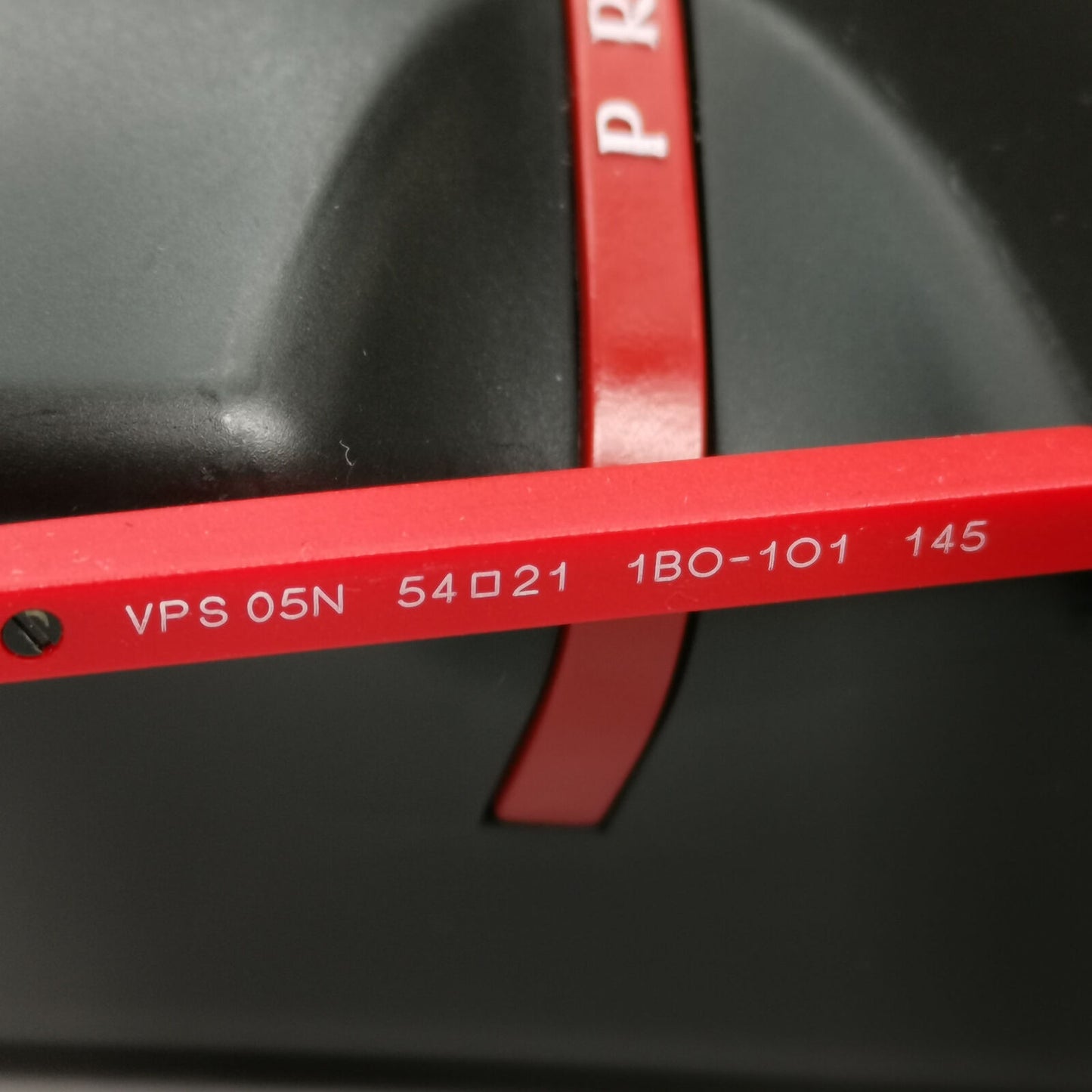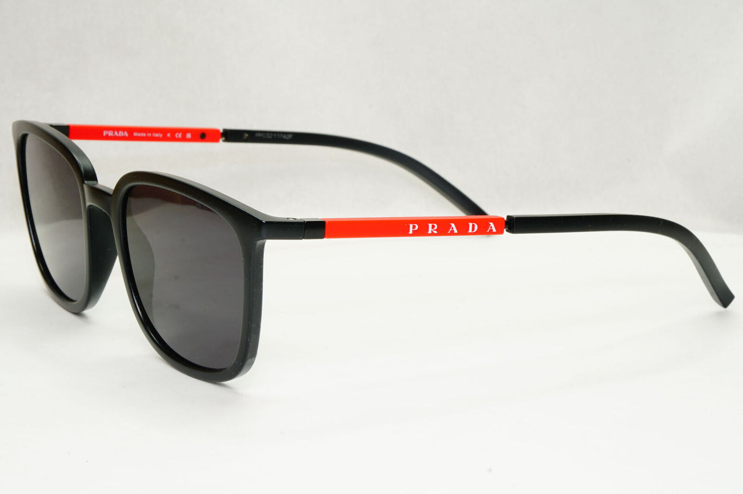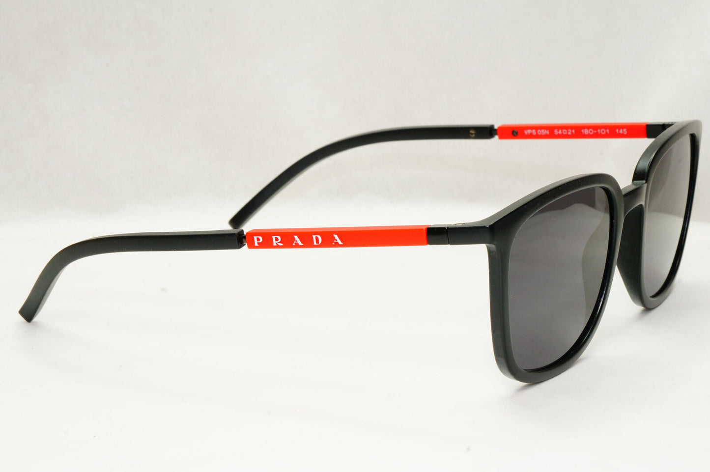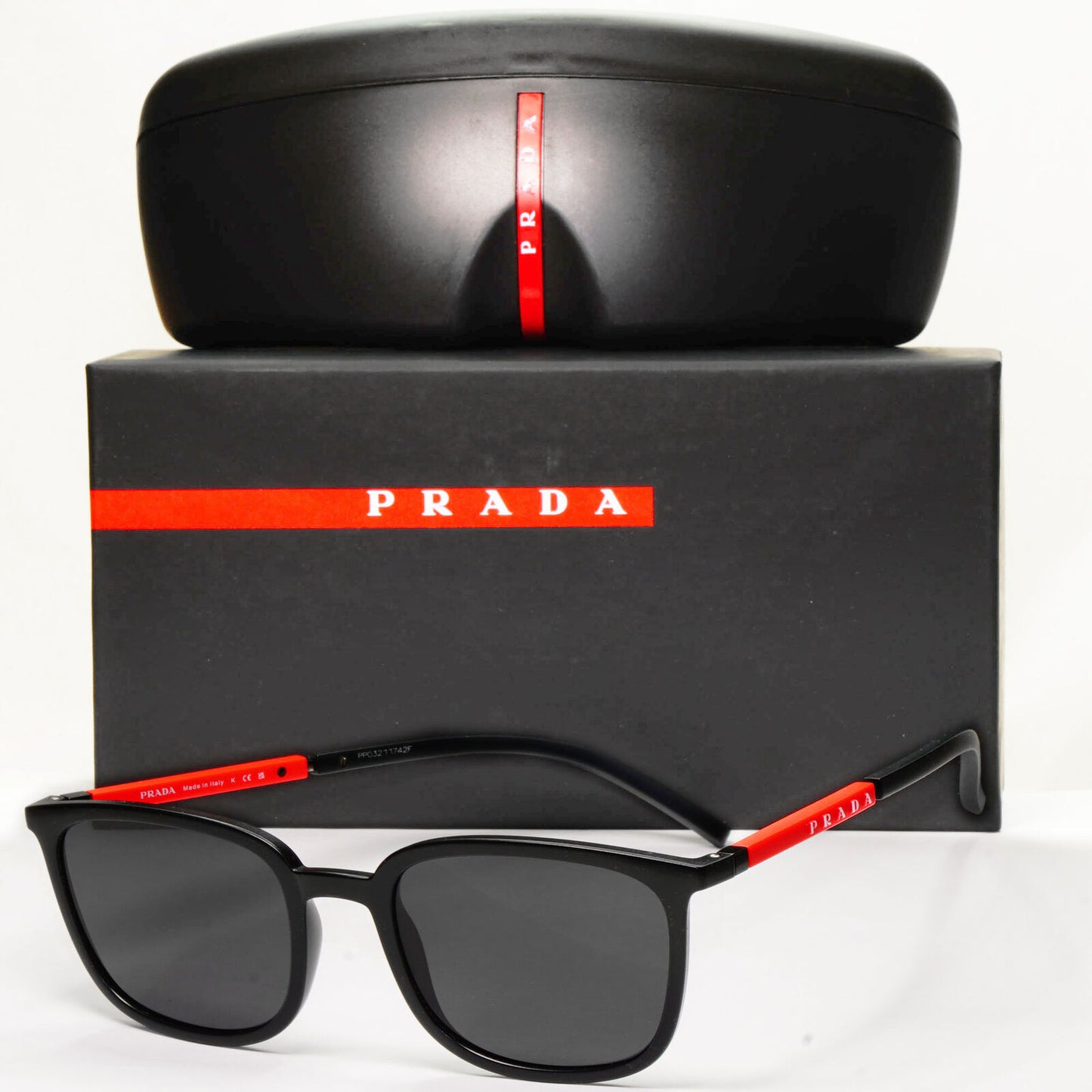 Prada Sunglasses Black Rubber Square Red Stripe PS05NV VPS 05N 1BO-1O1 54mm