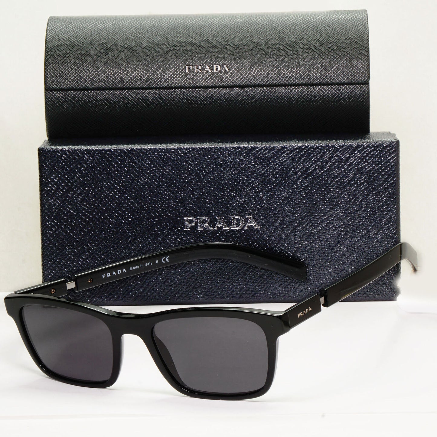 Prada Sunglasses Black Square Glossy Mens Fashion PR16XV VPR 16X 1AB-1O1 53mm
