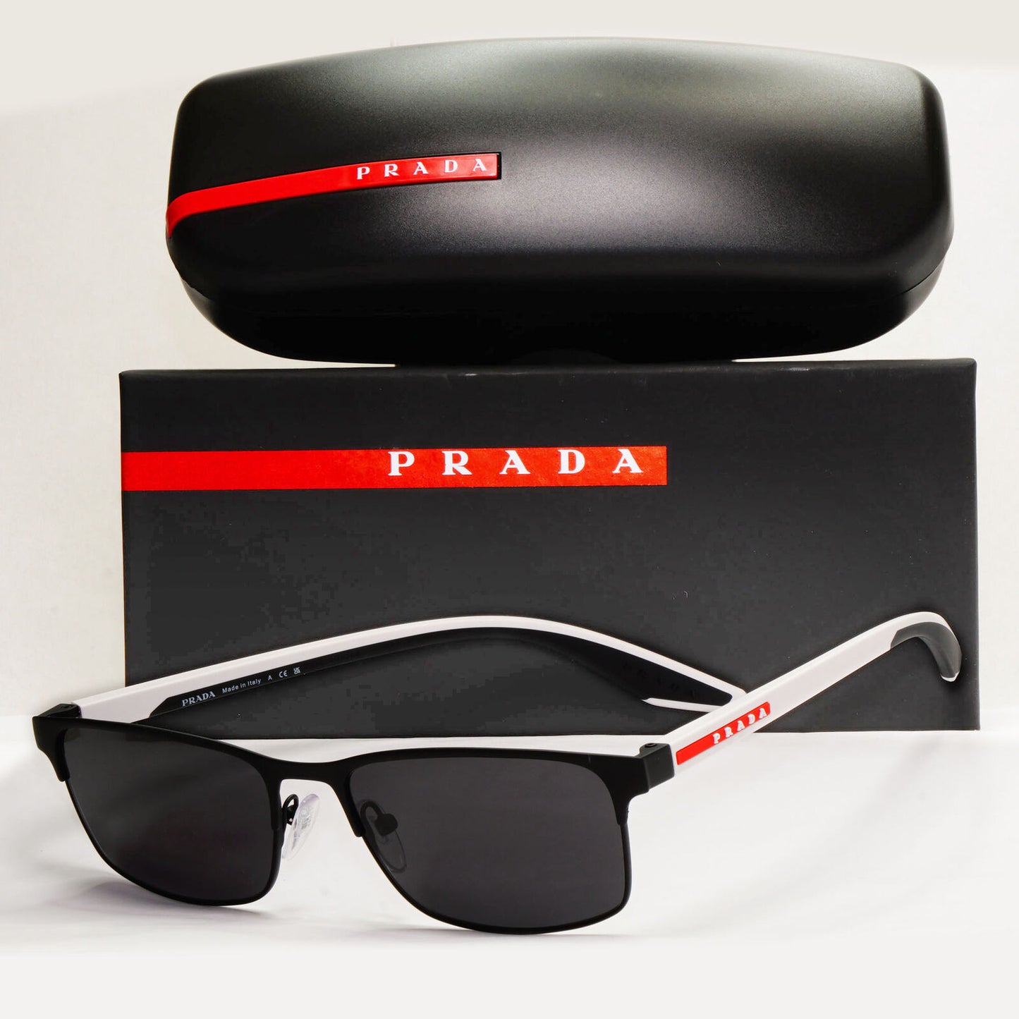 Prada Sunglasses Black White Square Rectangle Rubber PS50PV VPS 50P DG0-1O1 55mm