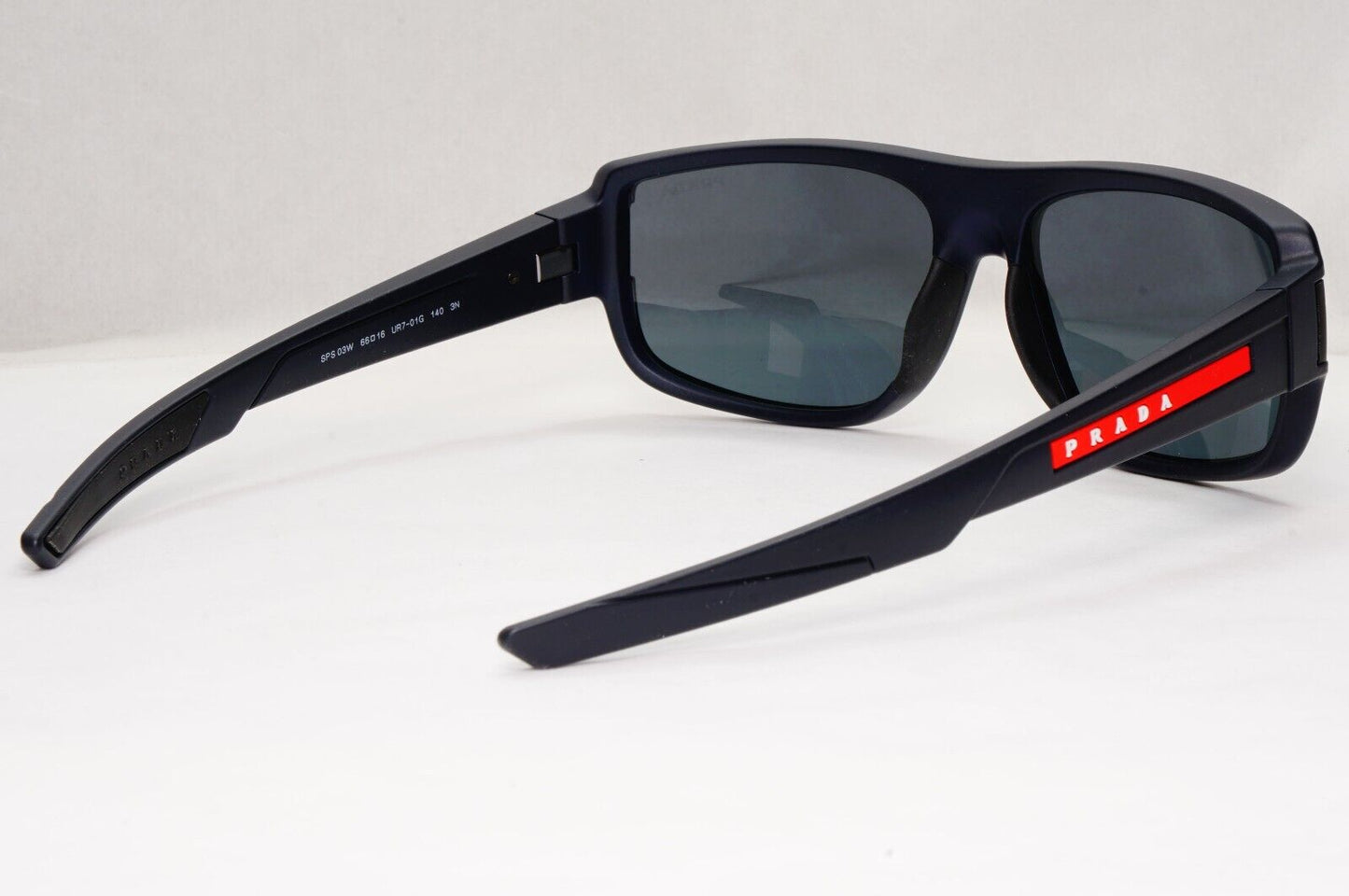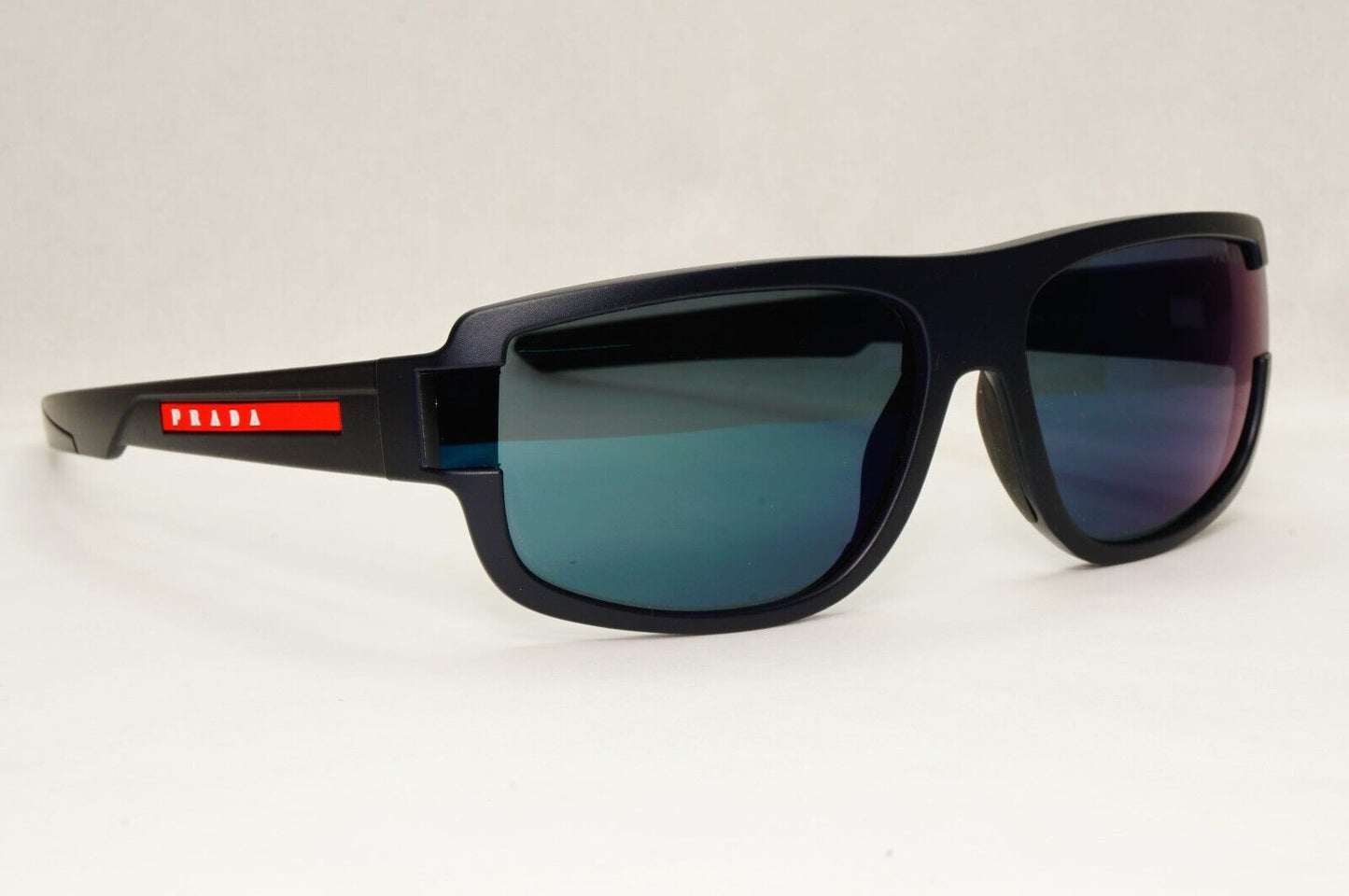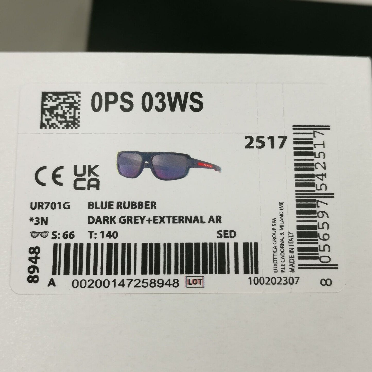 Prada Sunglasses Blue Mirror Rubber Wrap Square PS03WS SPS 03W UR7-01G