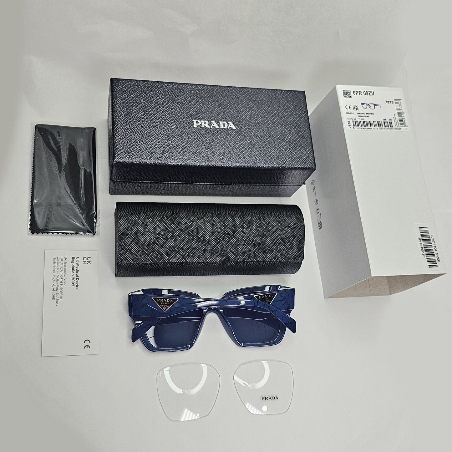 Prada Sunglasses Blue Triangle Symbole Marble Square PR09ZV VPR 09Z 18D-1O1 51mm