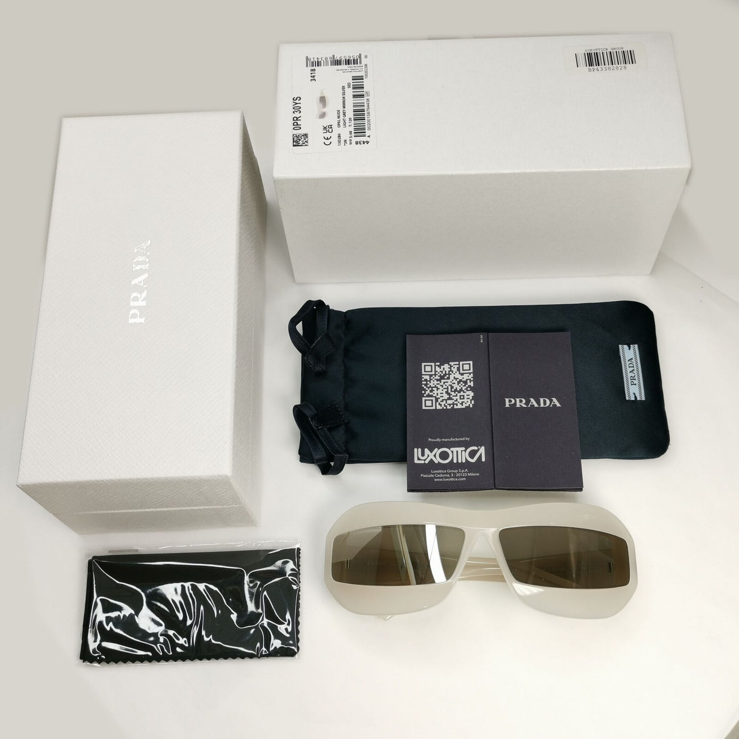 Prada Sunglasses Opal Nude White Silver Mirror Wrap PR30YS SPR 30Y 13D-2B0