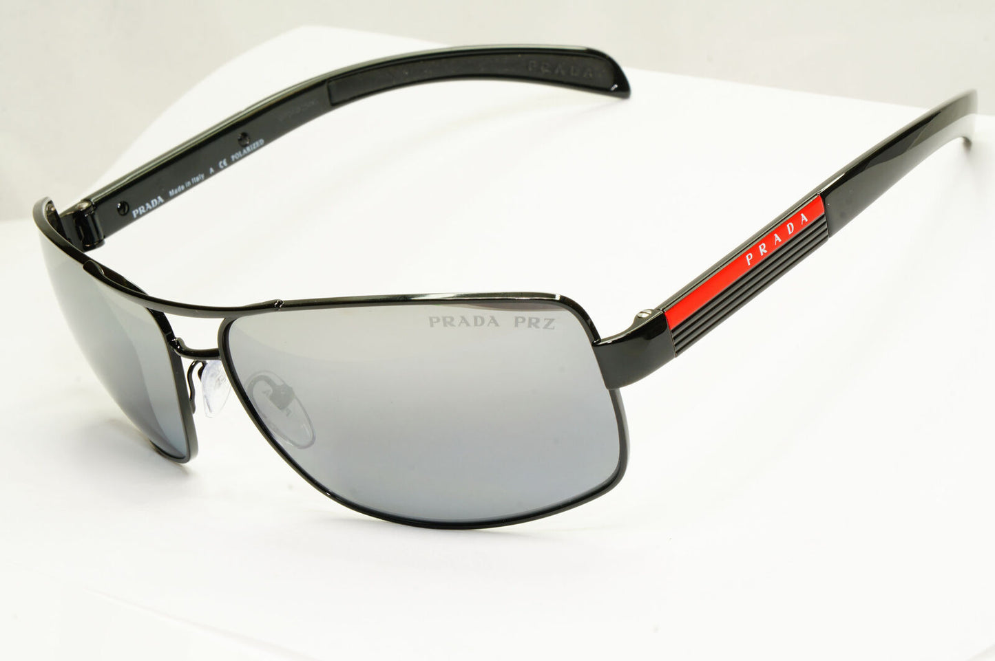 Prada Sunglasses Polarized Black Silver Mirror Navigator PS54IS SPS 54I 1AB-2F2