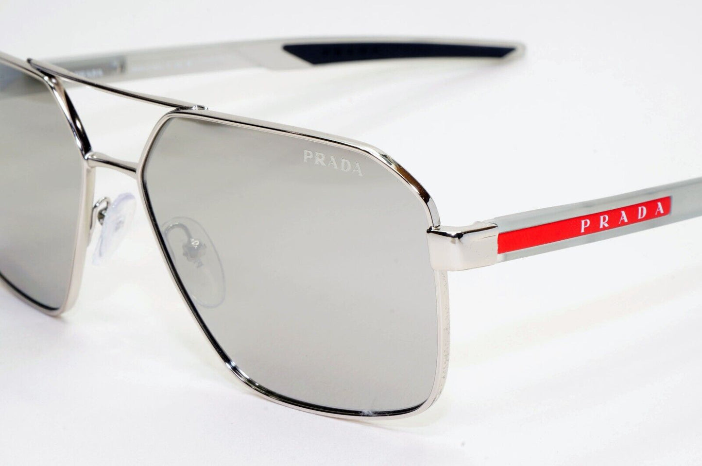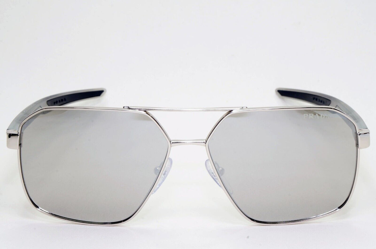 Prada Sunglasses Silver Mirror Grey Transparent PS55WS SPS 55W 1BC-07F 60mm