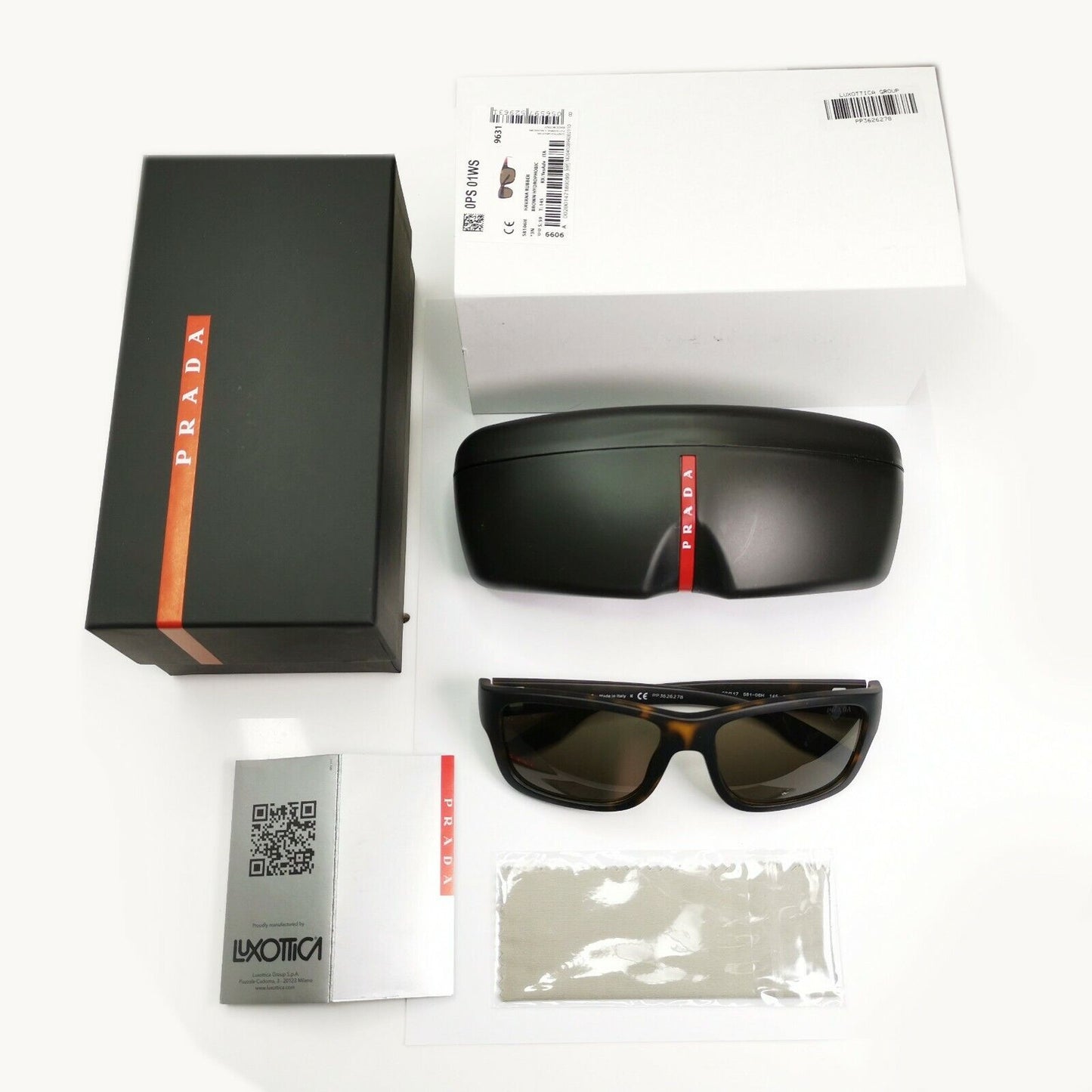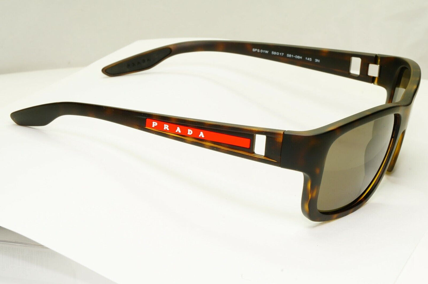Prada Tortoiseshell Brown Sunglasses Red Stripe Mens SPS 01W 681-06H PS01WS
