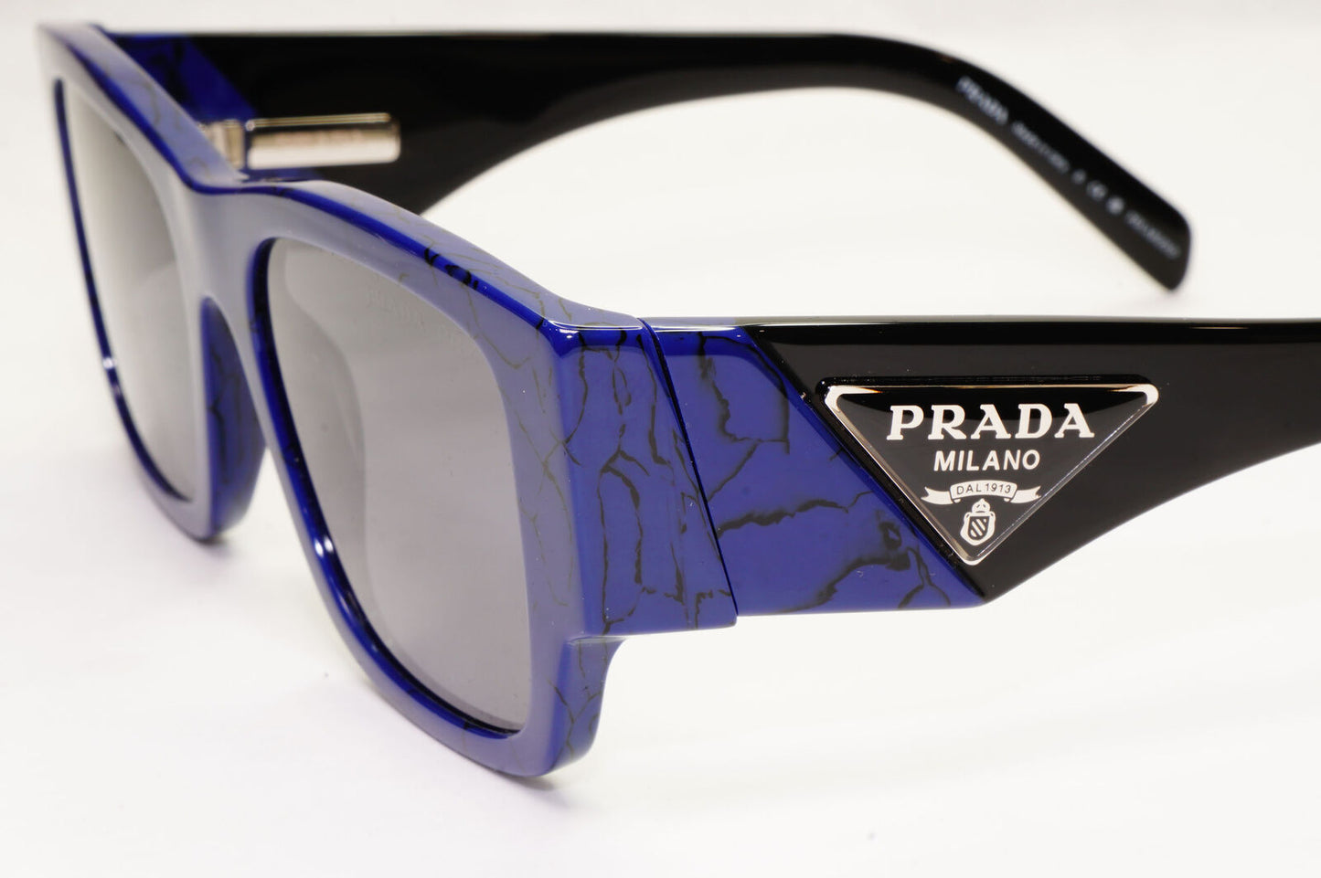 Prada Triangle Sunglasses Black Blue Polarized PR10ZS SPR 10Z 18D-5Z1