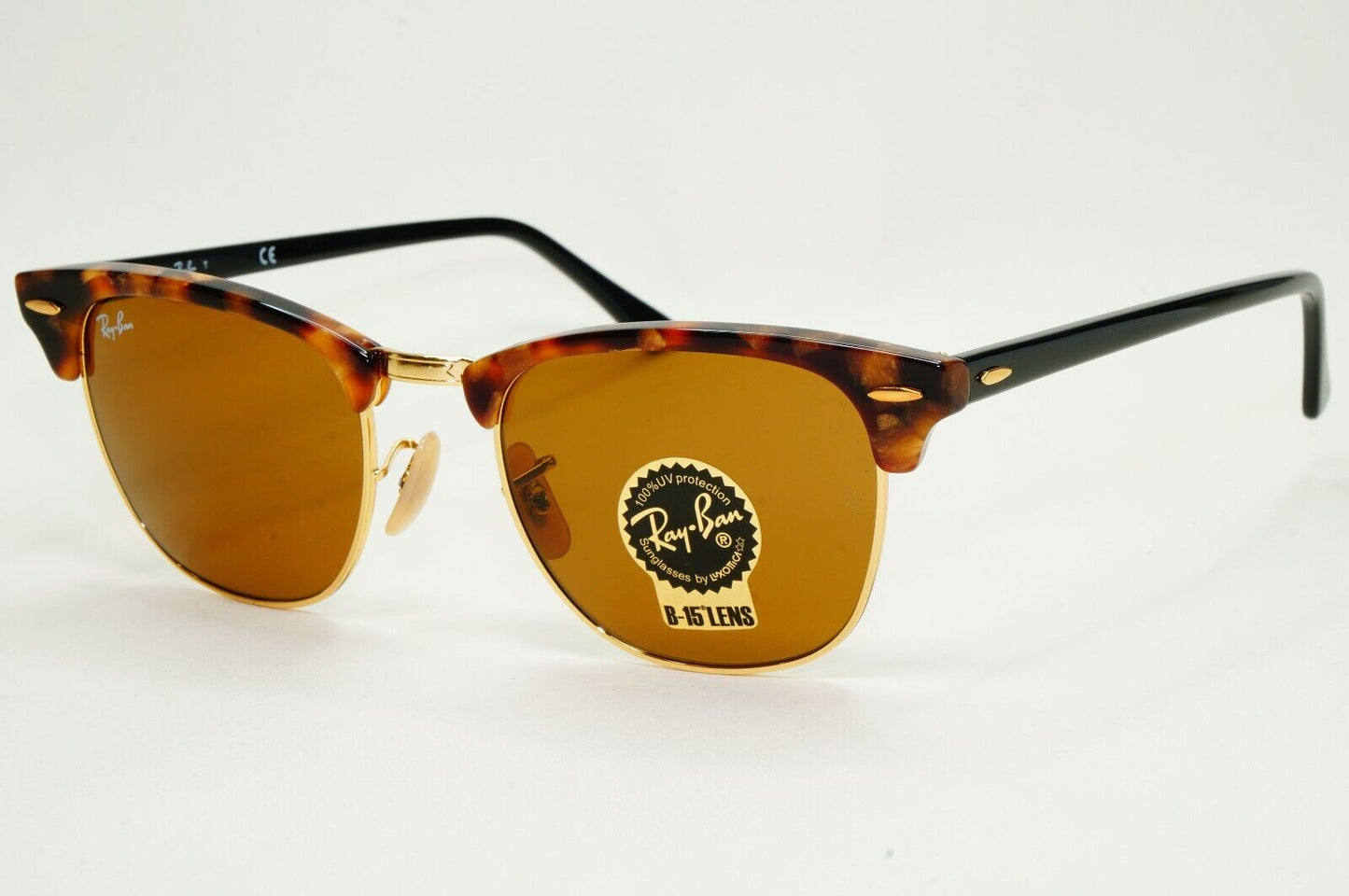 Ray-Ban Sunglasses Clubmaster Fleck Havana Brown Black Gold RB 3016 1160 51mm