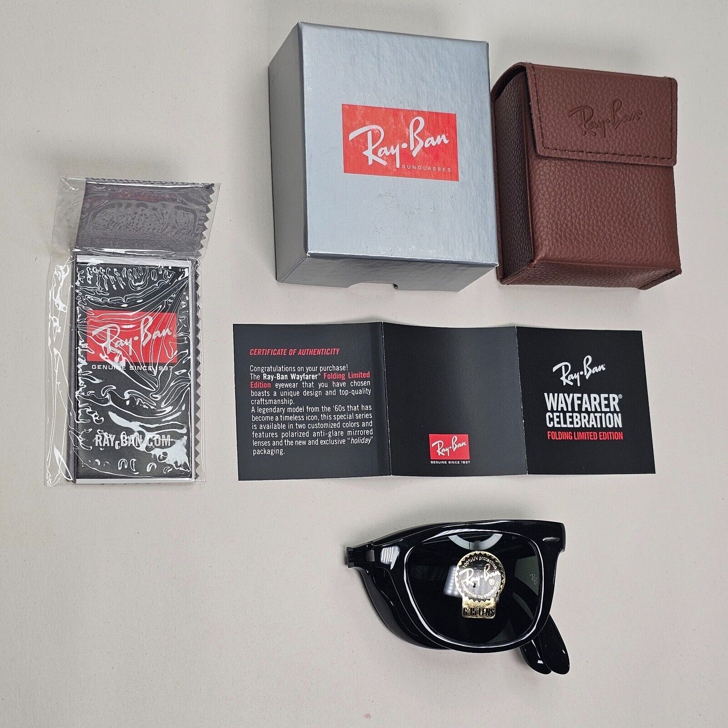 Ray-Ban Sunglasses Folding Wayfarer Black Glossy Green G15 RB 4105 601 50mm